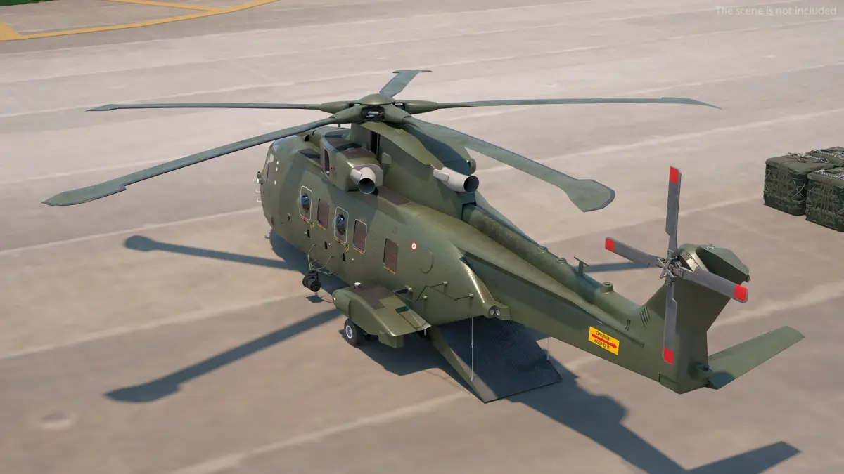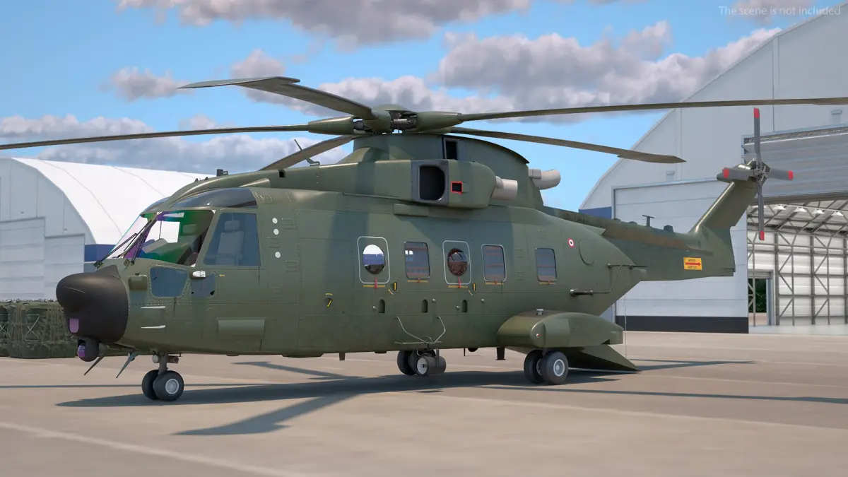 This multi-role helicopter is renowned for its functionality in both civilian and military applications, making it a vital asset for transport, rescue, and logistical operations. The model showcases intricate details such as the rotor assembly, aerodynamic fuselage design, and the externally mounted cargo bag. It captures the essence of the AW101’s robust engineering and capability to handle demanding missions, making it ideal for showcasing in simulations or design projects that focus on aviation and logistics.