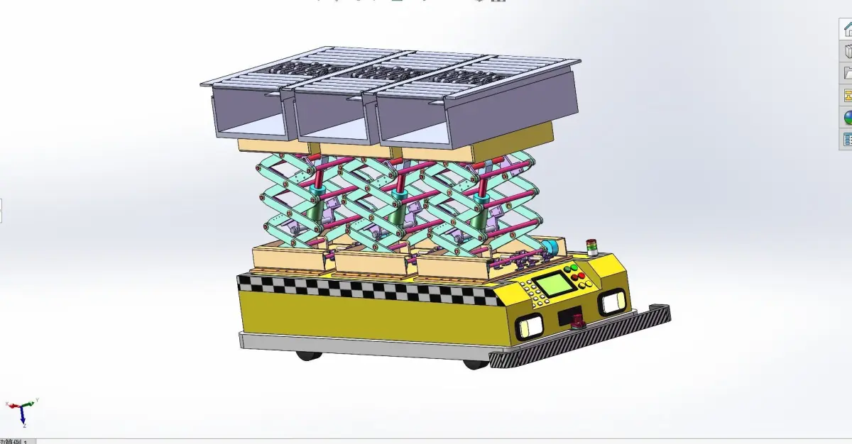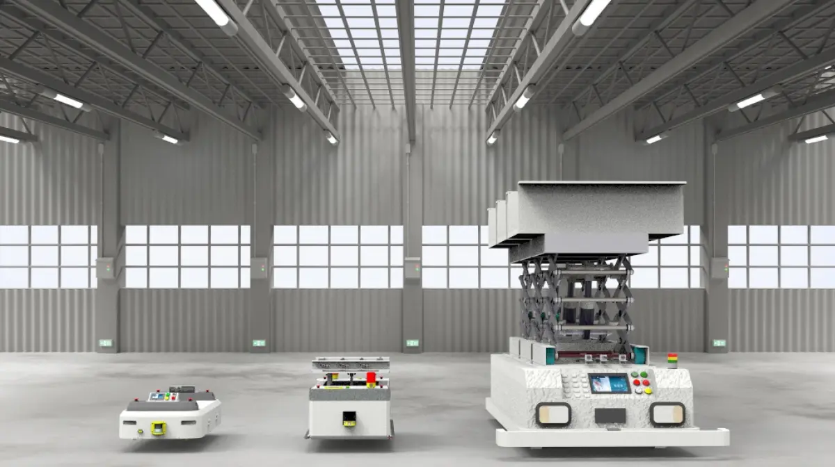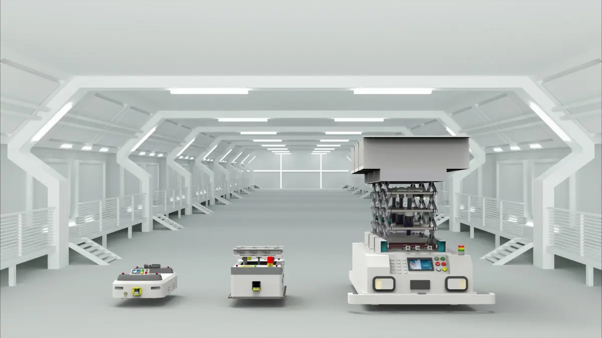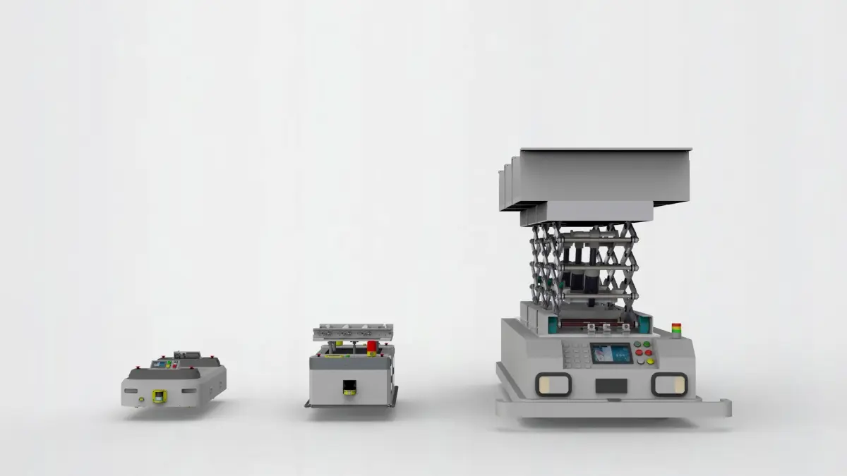 AGV vehicles assemble AGV for production and transportation, automatic transport car, elevator, carrier car for assembly line.
