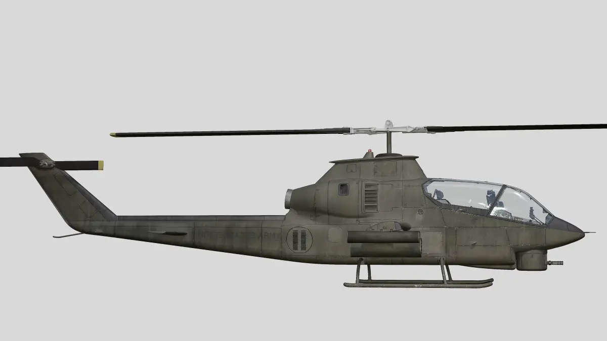 AH-1G Cobra Helicopter for US air support during Vietnam War period.This model comes with improved cockpit and chin mounted M136 paired with 40mm GL.