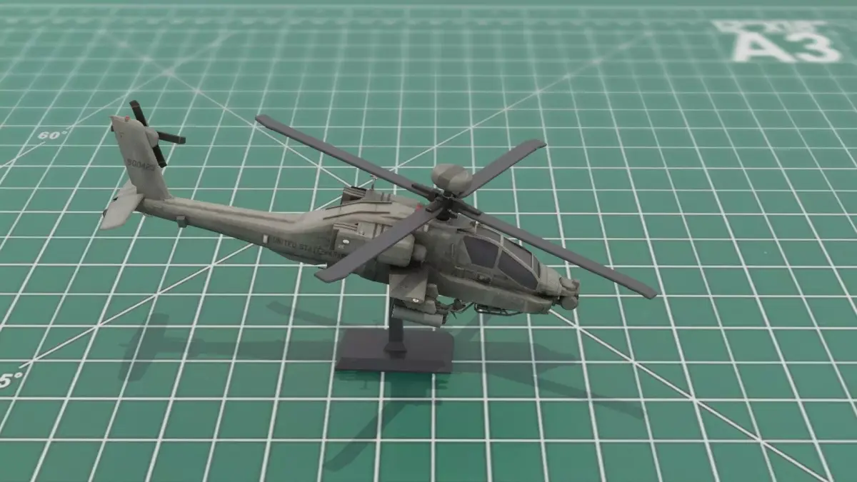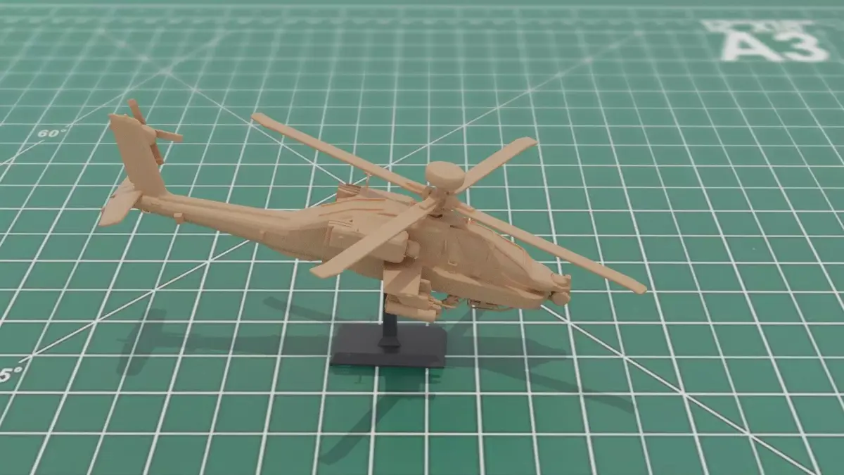 AH64D Apache Longbow STL Print File. For a commercial license to sell hard copies of this model please get in touch. 3MF files are ready to print at 1:120 scale. Model is shown painted in some illustrations. Model is supplied unpainted. Options for 'No glass' model showing cockpit interior. If you'd like a physical print of any of this or any of our models, let us know and we can setup POD for you. We have a large selection of ship, aircraft and vehicle models built to these same specs - please ask for details. We can also build any 3D kit to your exact needs.