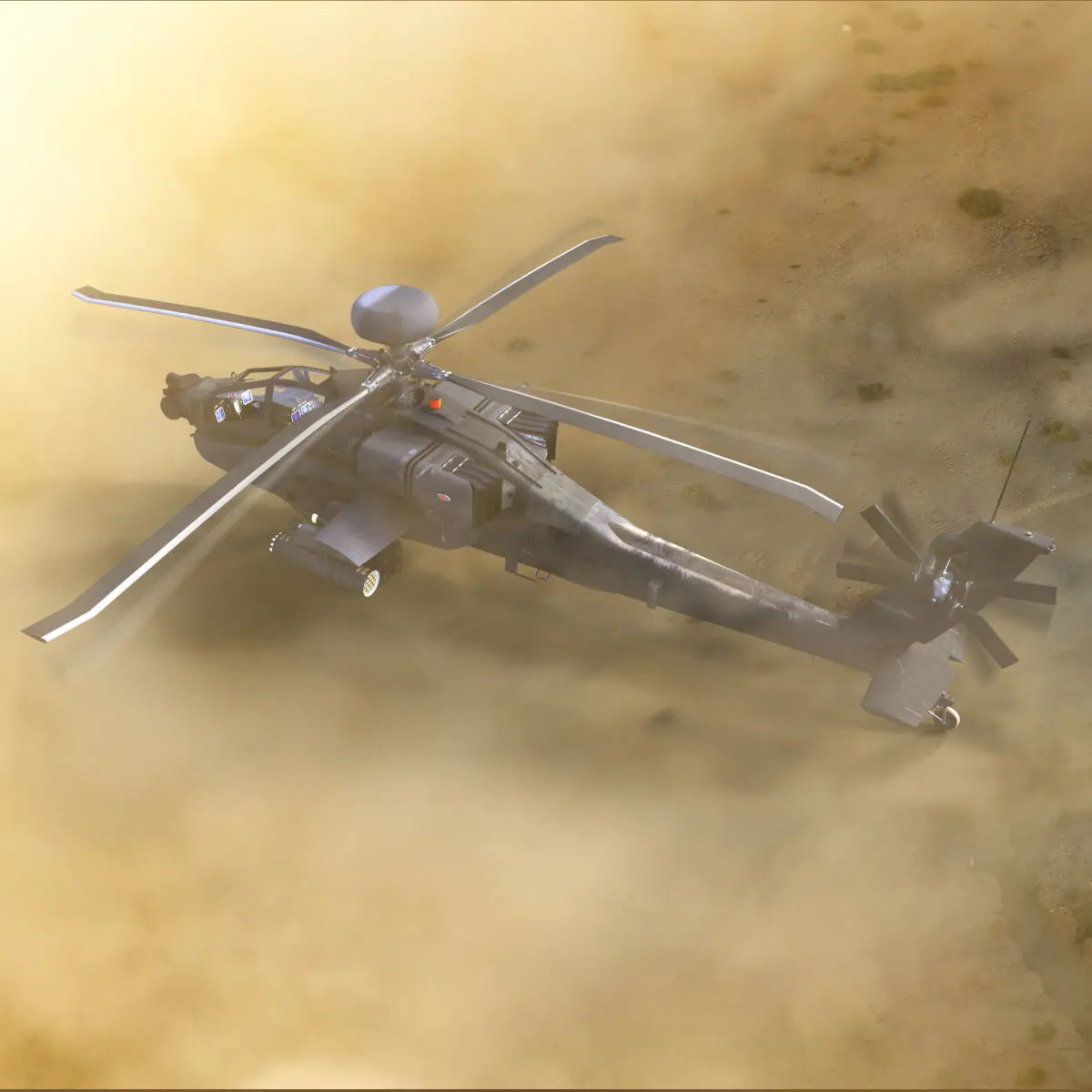 This AH64E Apache Longbow Helicopter Gray 2 In 1 is a high quality, photo real model that will enhance detail and realism to any of your rendering projects. The model has a fully textured, detailed design that allows for close-up renders, and was originally modeled in 3ds Max 2012 and rendered with V-Ray.