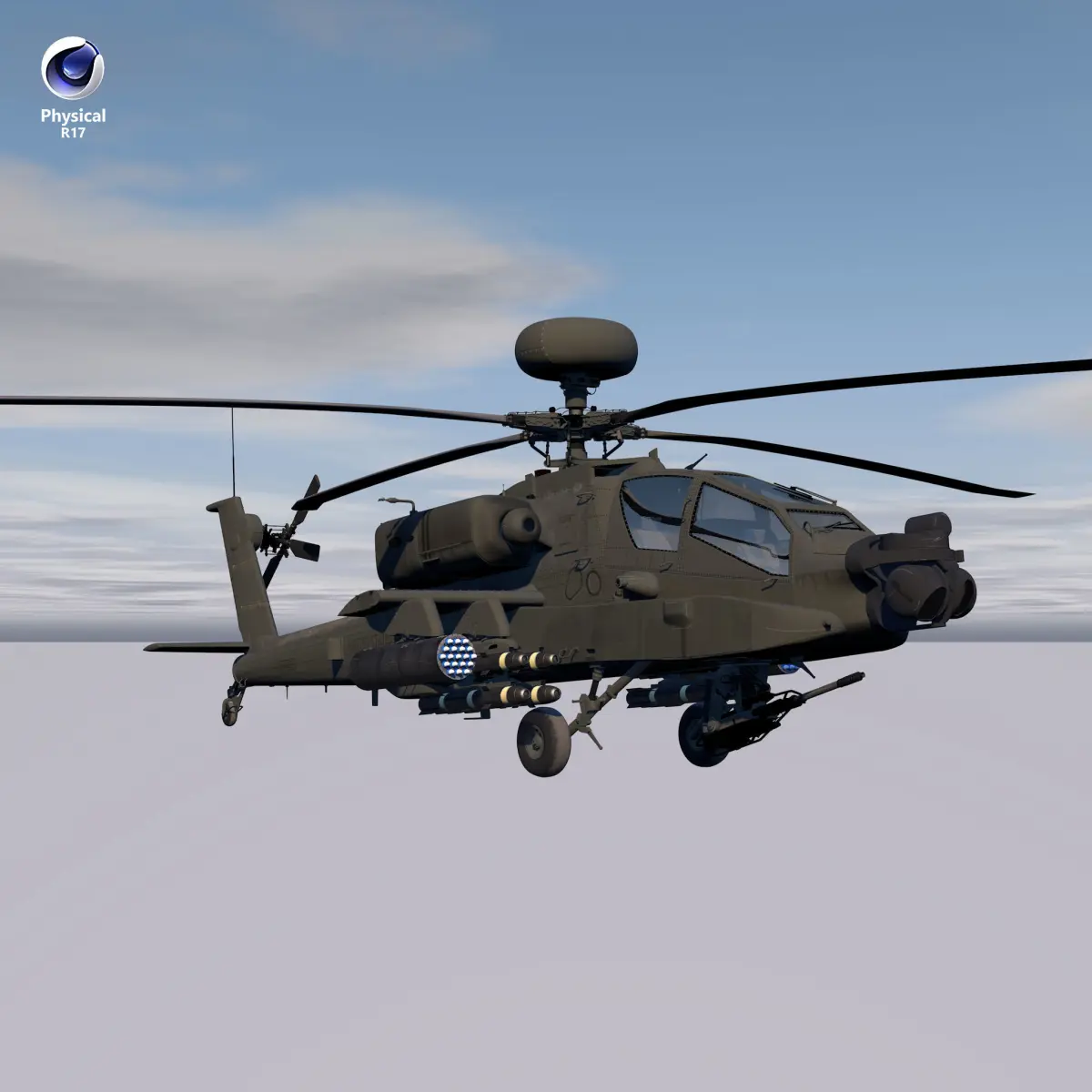 This AH64E Apache Longbow Helicopter Green Hard Used is a high-quality, photo-real model that will enhance detail and realism to any of your rendering projects. The model has a fully textured, detailed design that allows for close-up renders and was created by CGEAS.