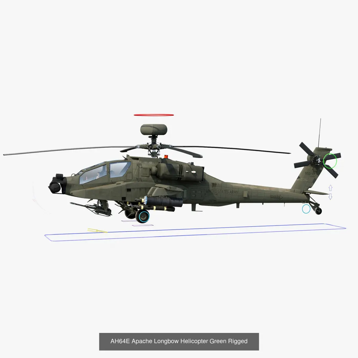This AH64E Apache Longbow Helicopter Rigged Collection is a high quality, photo real collection that will enhance detail and realism to any of your rendering projects. The models has a fully textured, detailed design that allows for close-up renders, and was originally modeled in 3ds Max 2012 and rendered with V-Ray.