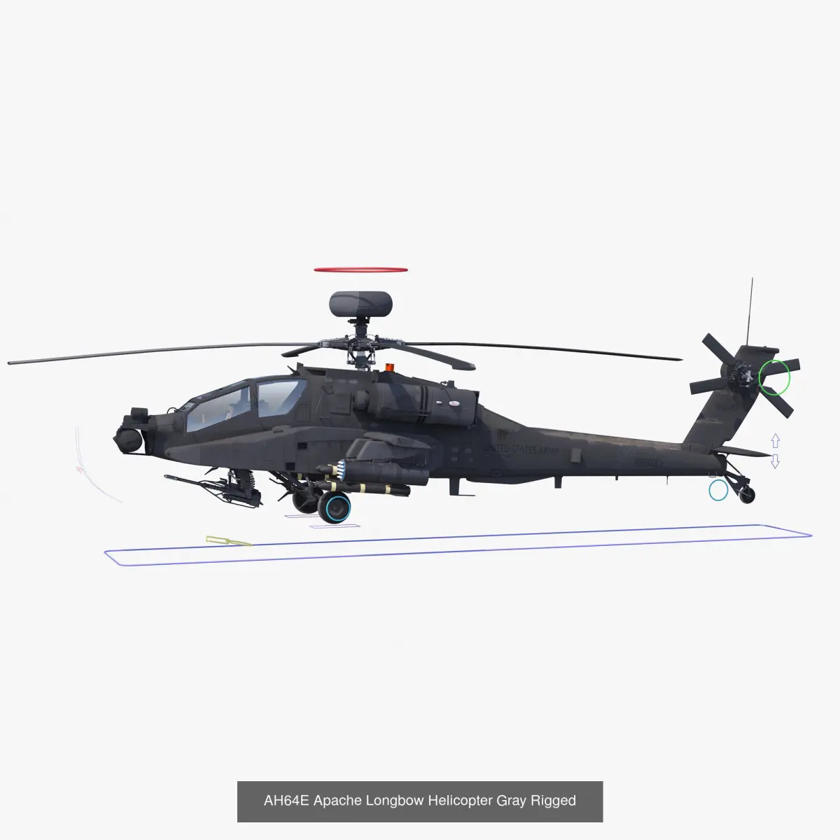 3. AH64E Apache Longbow Helicopter Gray 2 In 1 Rigged