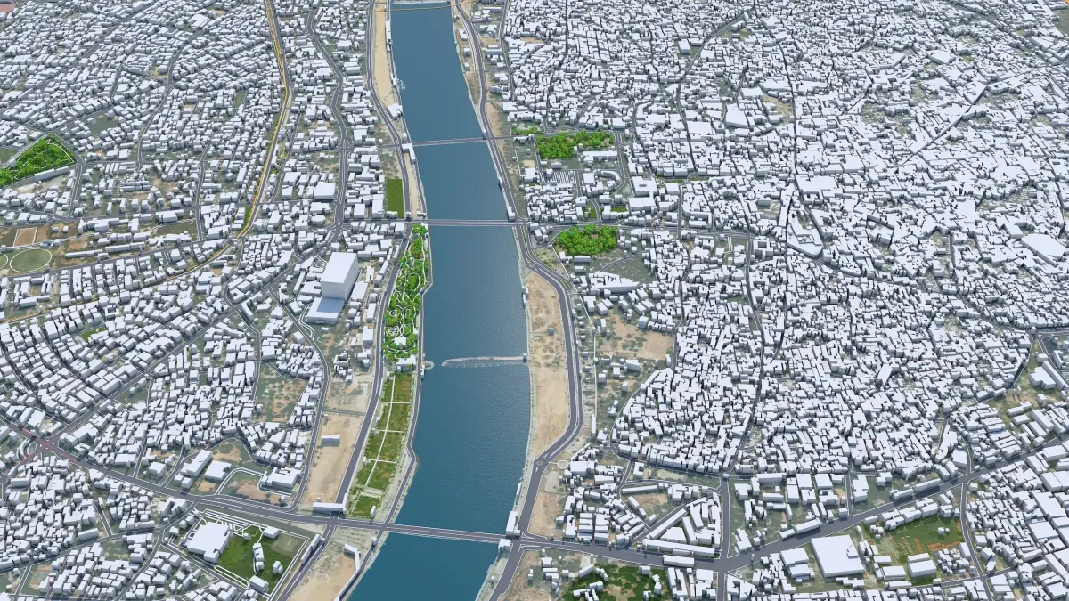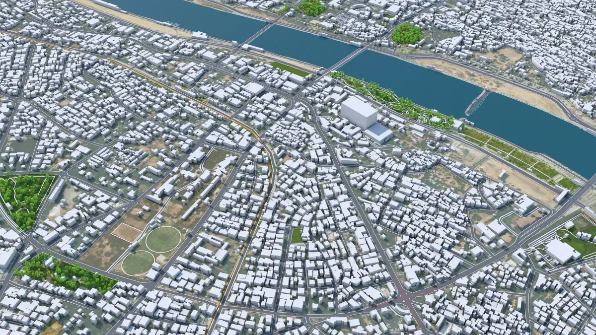 Accurate 3D city model and its surrounding area based on GIS data Year 2022