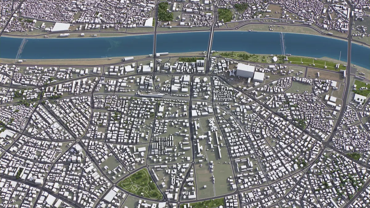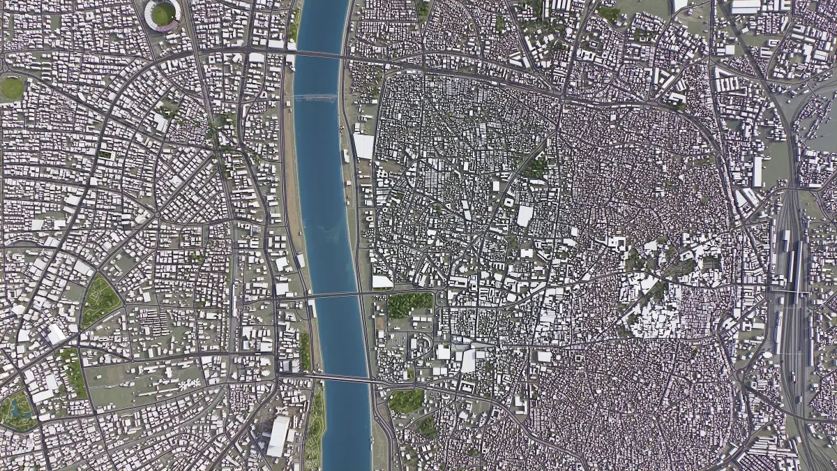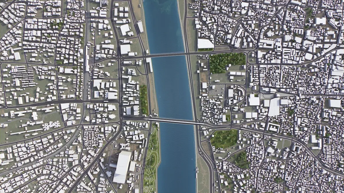 - Buildings and roads placed on the optimized terrain