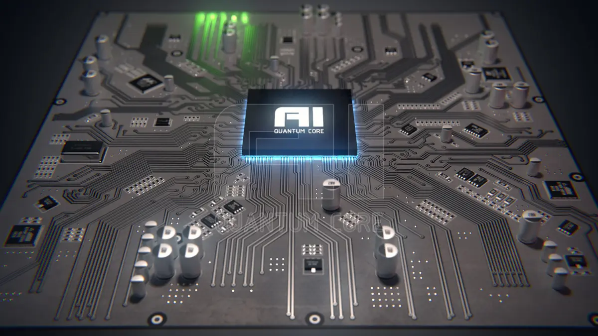 Model has five materials: 1 - core processor, 2 - wires, 3 - chips, 4 - motheboard top, 5 - motherboard bottom