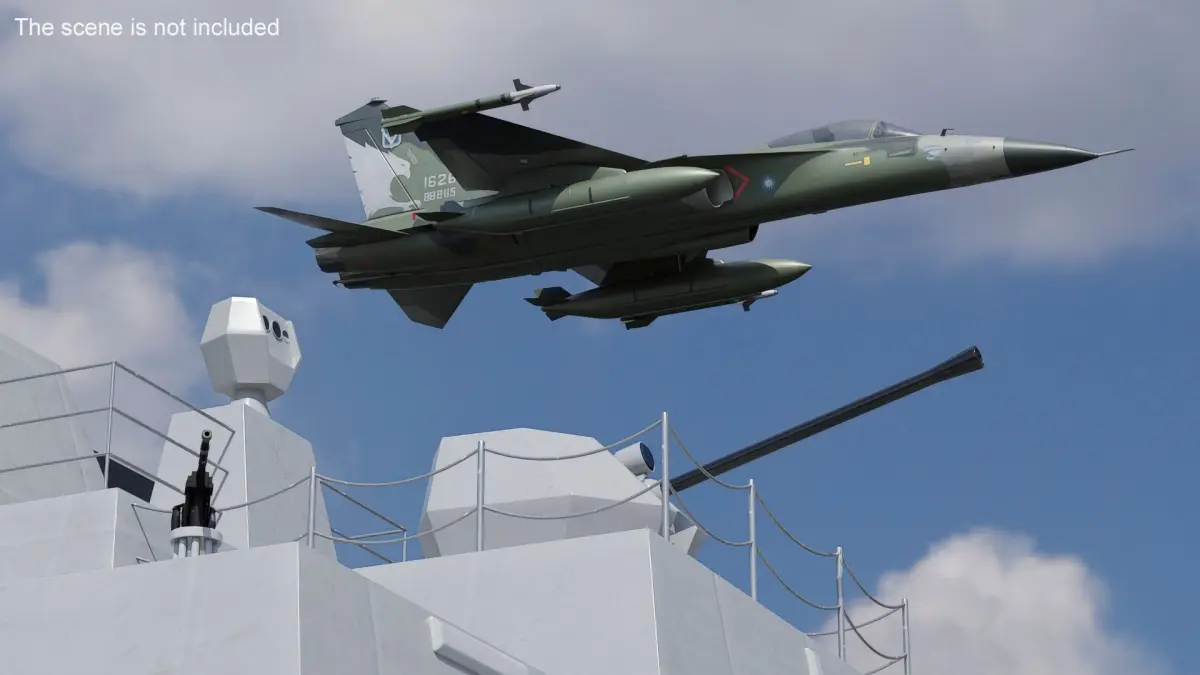 AIDC F-CK-1 Ching-Kuo Fighter Jet Green Rigged for Maya is a 3d model of a Taiwanese multirole combat aircraft, designed for high-performance aerial operations, featuring rigged components for dynamic animations.