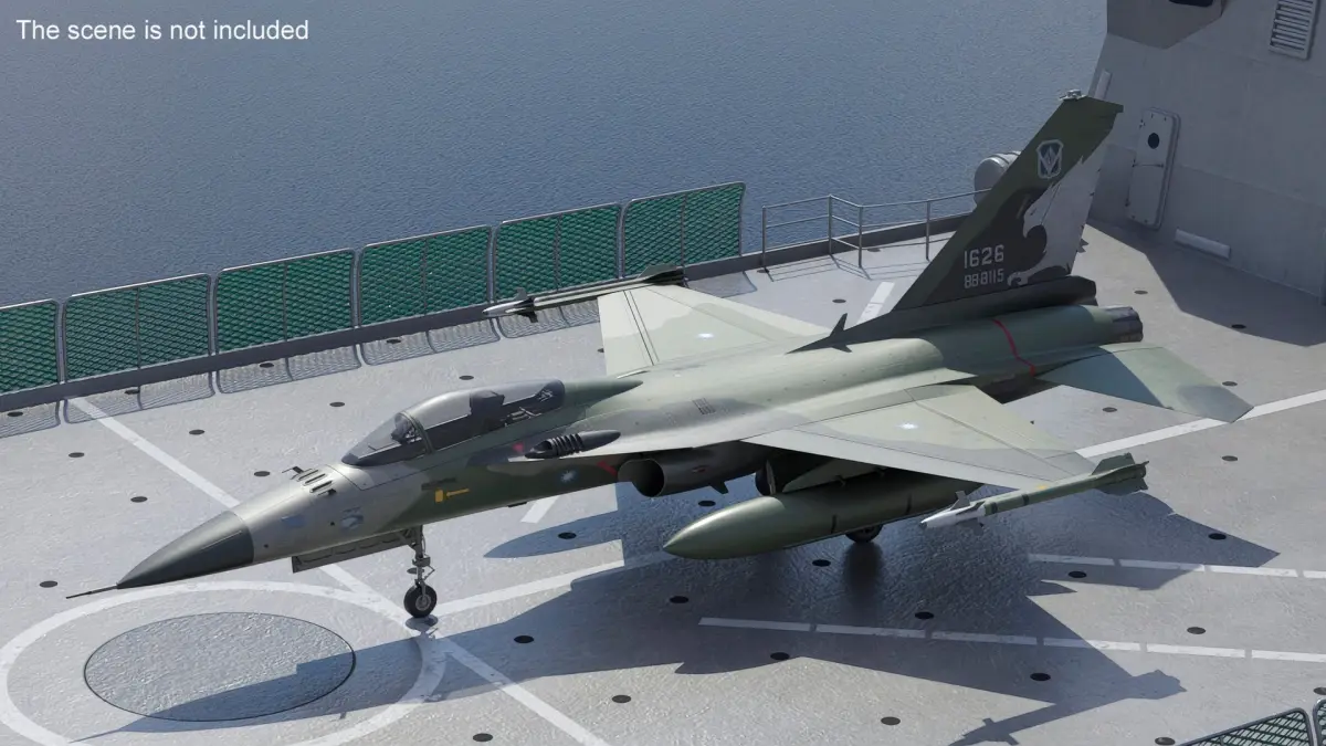 AIDC F-CK-1 Ching-Kuo Fighter Jet Green Rigged for Maya is fully rigged and is ready to be animated in Maya. You can easily position it the way you need or animate it the way your project requires. See the screenshots to get an idea of how rigging works. The pose of the model on the render images is an example and can be recreated using rig, it is not initially included into the product.