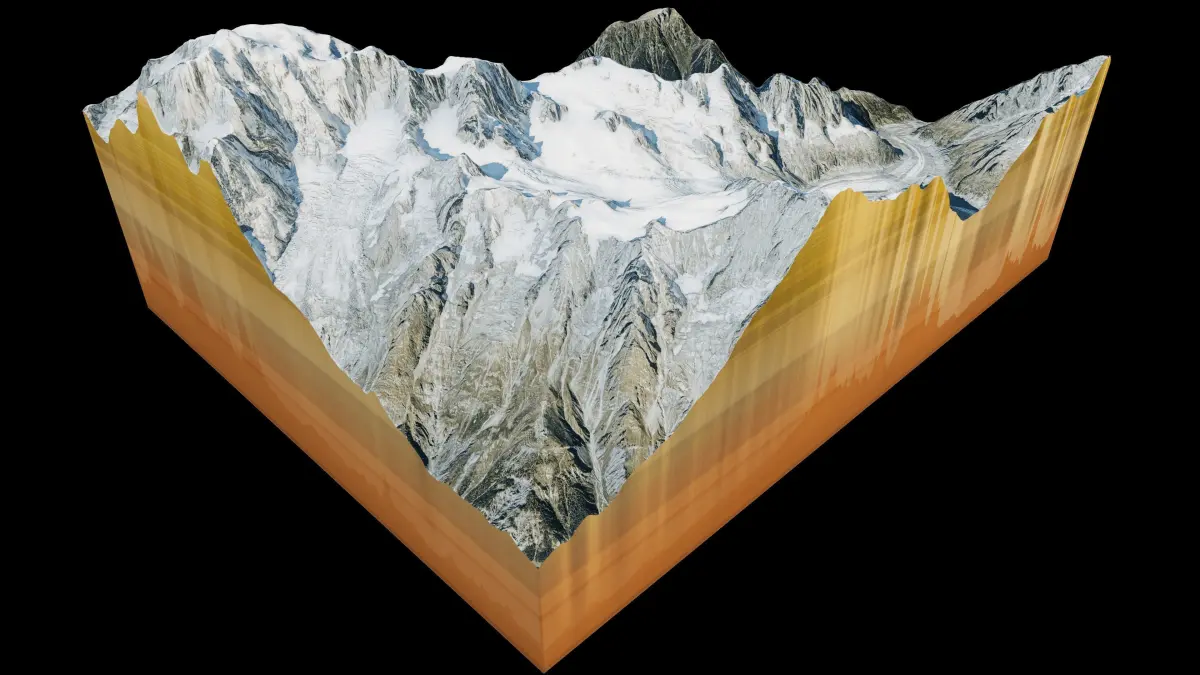 3d model landscape of Aiguille du Midi, Mont Blanc Massif mount range, Chamonix , France.