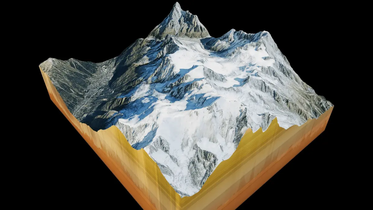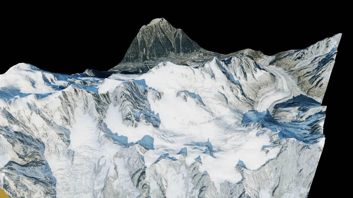 Aiguille du Midi mountain peak 3d model terrain, Aiguille du Midi mount 3d landscape model
