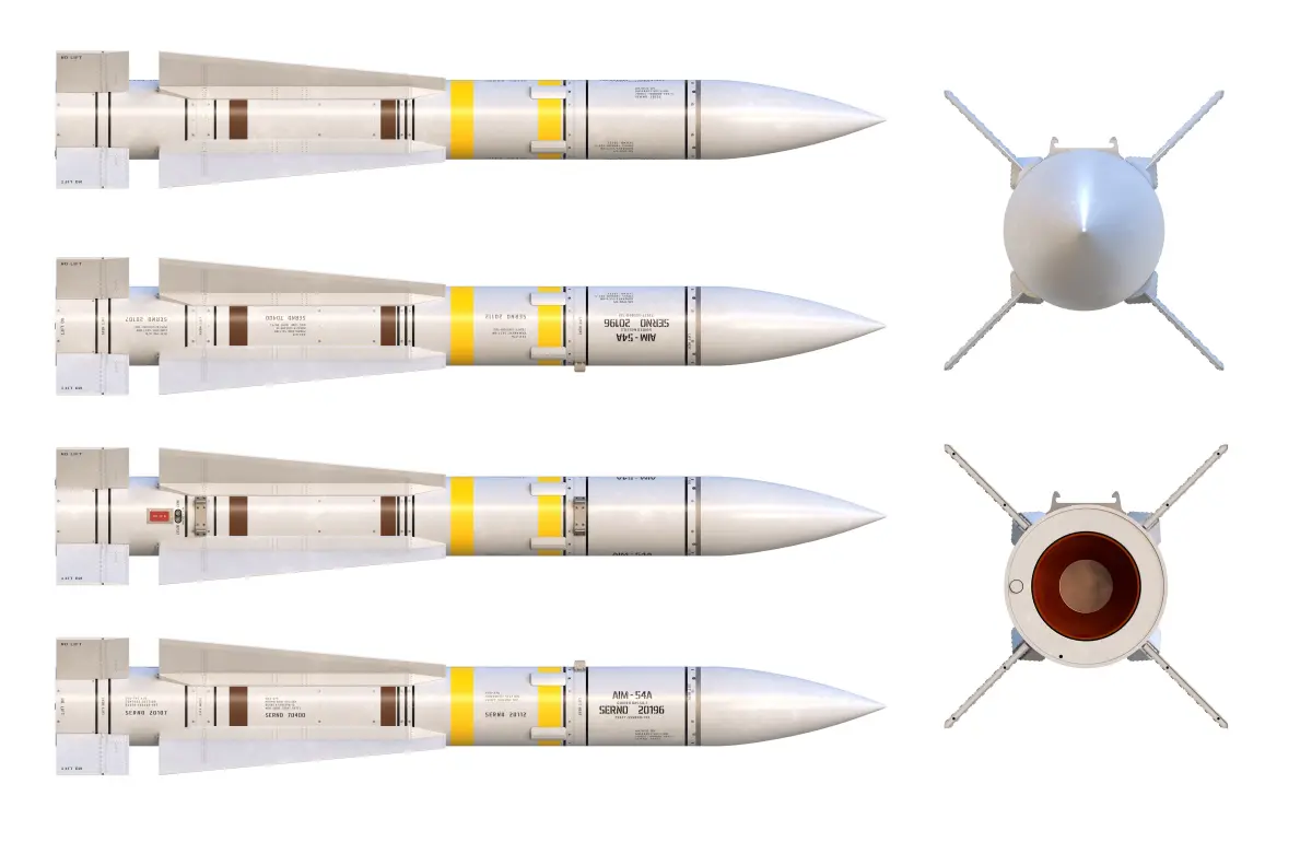 The AIM-54 Phoenix is an American active radar-guided, beyond-visual-range air-to-air missile (AAM), carried in clusters of up to six missiles on the Grumman F-14 Tomcat, its only operational launch platform.