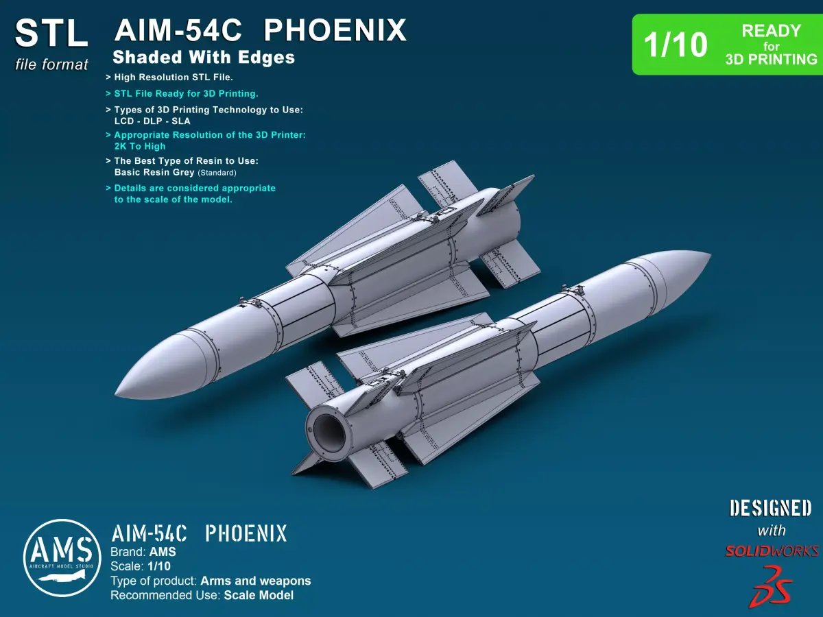 Description:The AIM-54 Phoenix is an American radar-guided, long-range air-to-air missile (AAM), carried in clusters of up to six missiles on the Grumman F-14 Tomcat,its only operational launch platform.