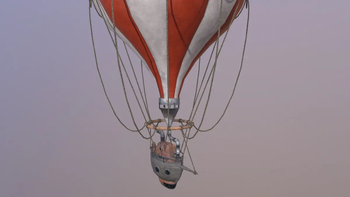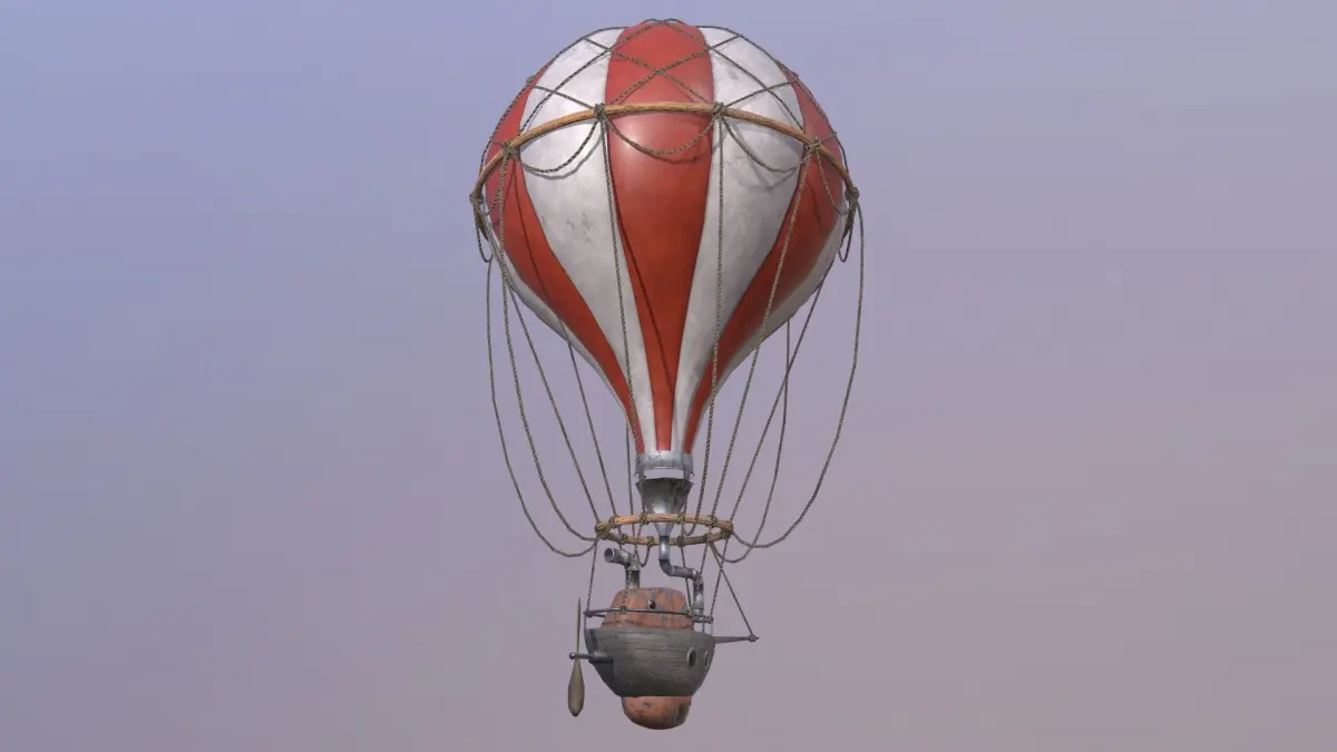 This is a balloon, a celestial ship with a steam engine and a propeller for a round-the-world trip. This is a realistic low poly 3D model.