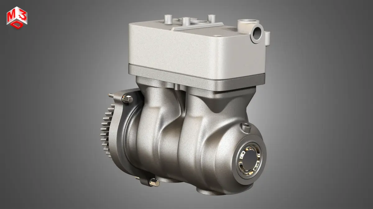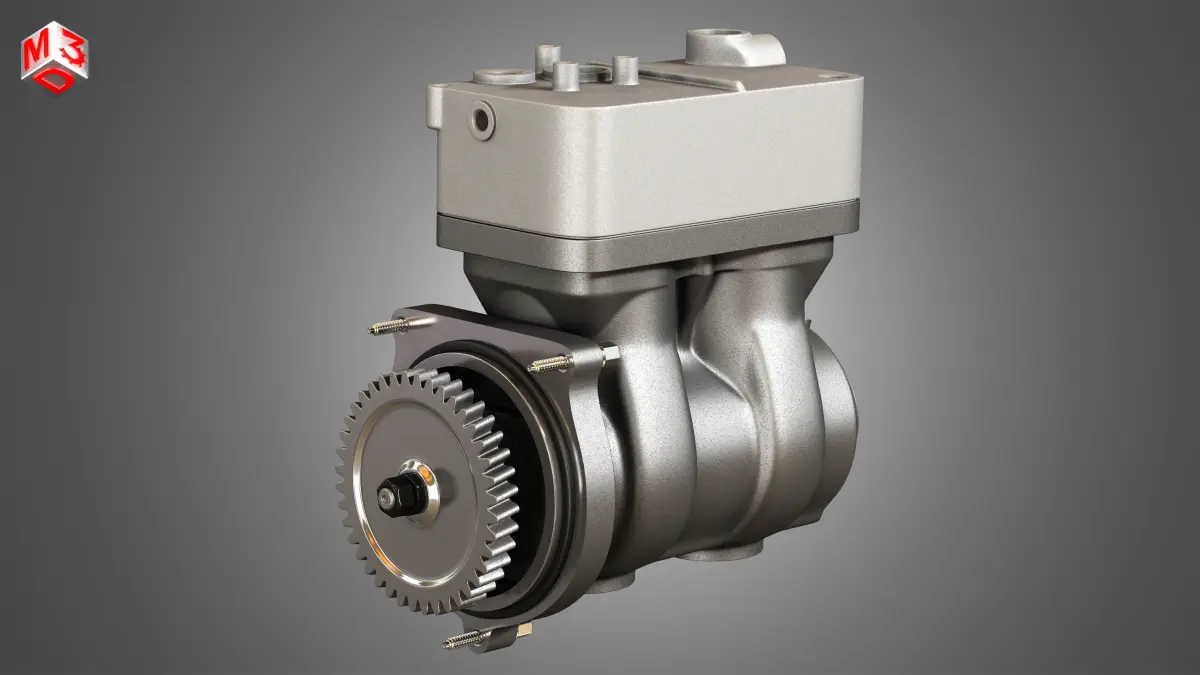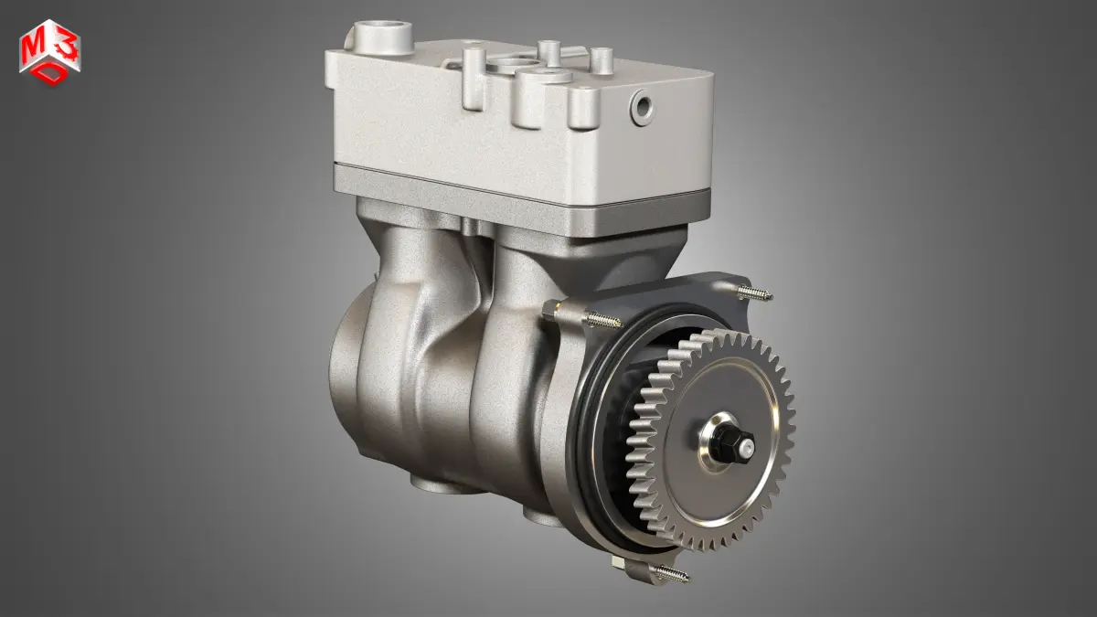Air Brake Compressor - Two Piston - Volvo D13 Diesel Engine