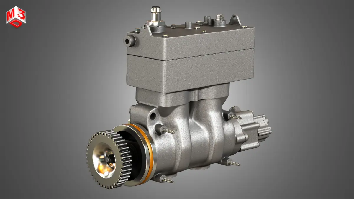 Air Brake Compressor - Two Piston - Paccar MX13 Diesel Engine