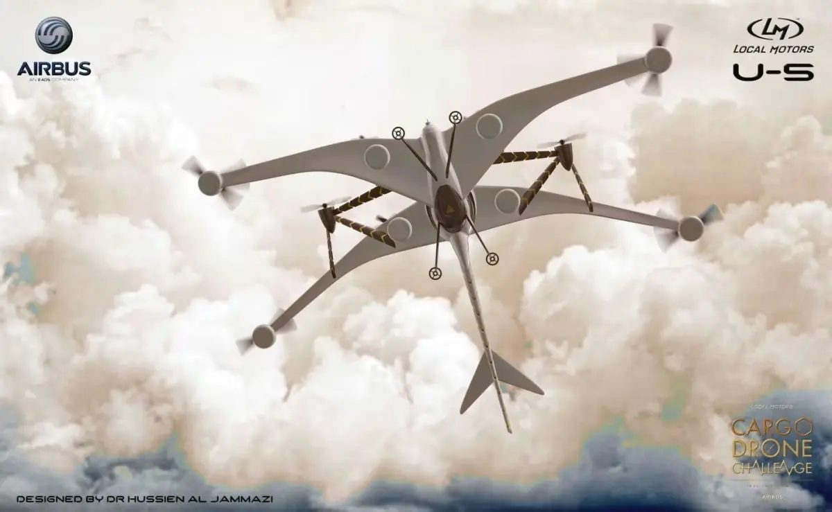 An Air bus cargo drone able enough to lift 2 kg of weight download the file and print it motor to be use:https://tmotor.en.made-in-china.com/product/HwqmbFhoLrWP/China-T-Motor-2kg-Thrust-9-8g-W-Professional-Drone-BLDC-Motor-Mn6007II-Kv160.htmlif you have any problem i am aviliable 24/7 contact inbox