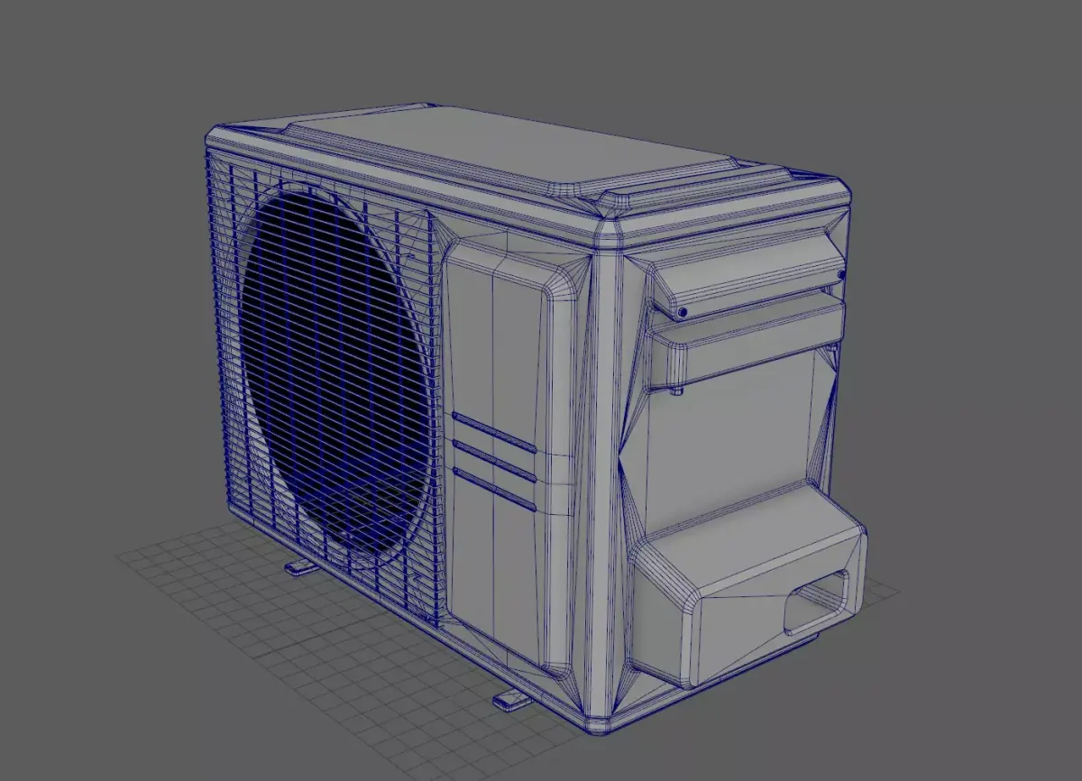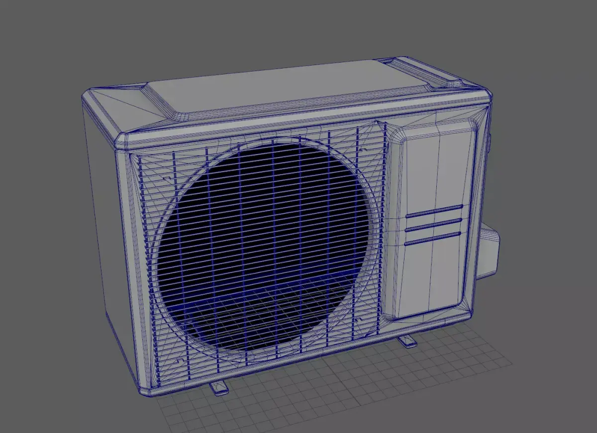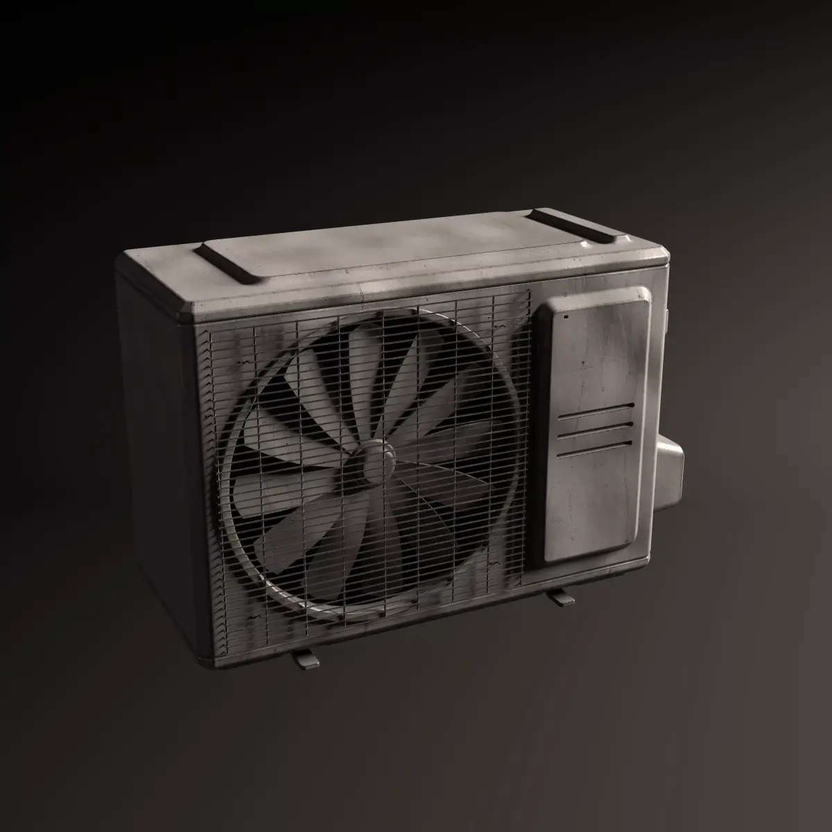 A realistic outdoor AC unit model designed for CGI rendering. Includes 8K/4K textures, Blender and Maya files, OBJ/FBX exports, and Redshift shading.
