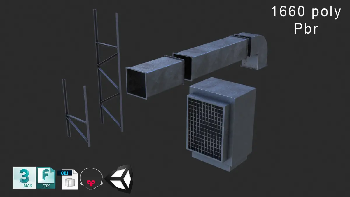 MAX (Autodesk 3ds Max, filesize: 39.9 MB), OBJ (OBJ, filesize: 16.8 MB), FBX (Autodesk FBX, filesize: 33.5 MB), MAX (Autodesk 3ds Max, filesize: 39.9 MB), UNITYPACKAGE (Unity 3D, filesize: 32.7 MB), TBSCENE (Marmoset Toolbag, filesize: 17.6 MB)