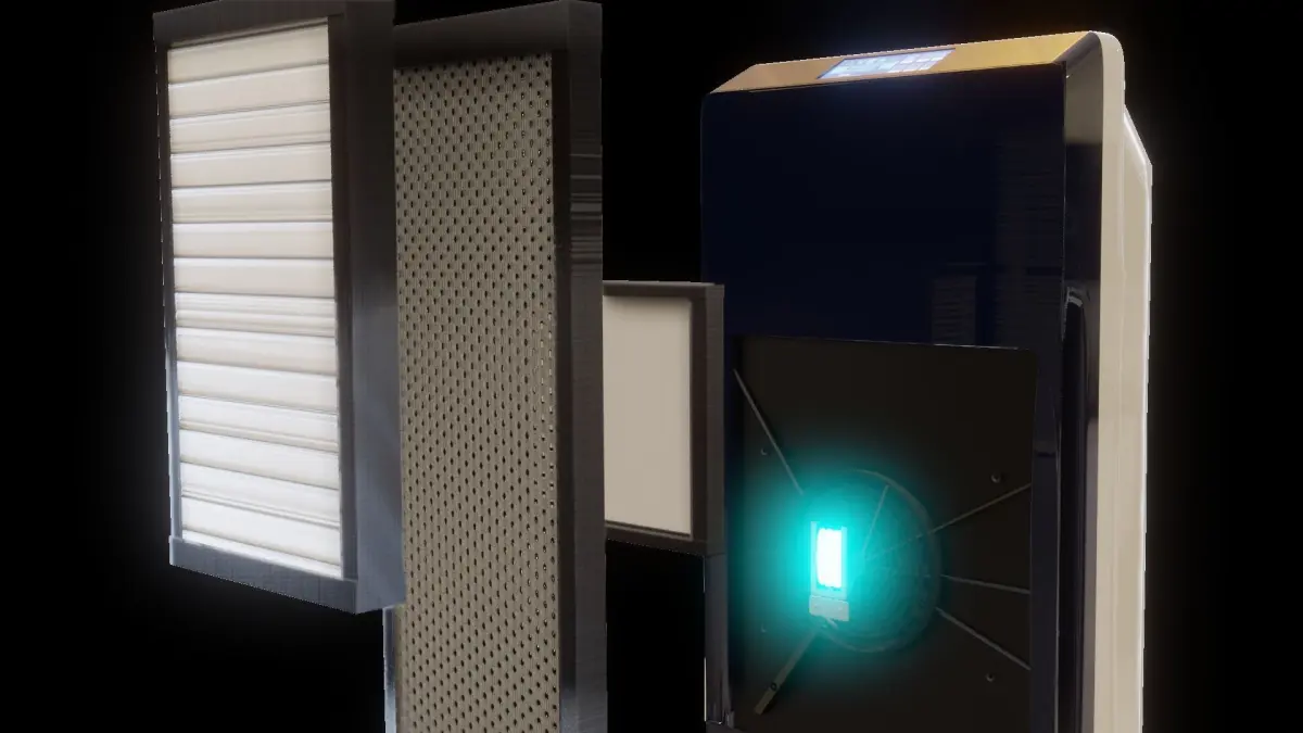 Ozone Air Purifier with a sleek design and anticovid/bacterial action with a UV light, the 3d model have a little of animation of opening and showing the inside parts.