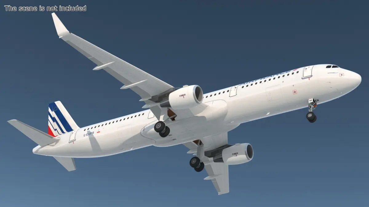 Air France Airbus A321 with Cabin and Cockpit Rigged for Cinema 4D is a three-dimensional model of a popular commercial passenger aircraft, widely recognized for its efficiency and comfort in short to medium-haul flights.