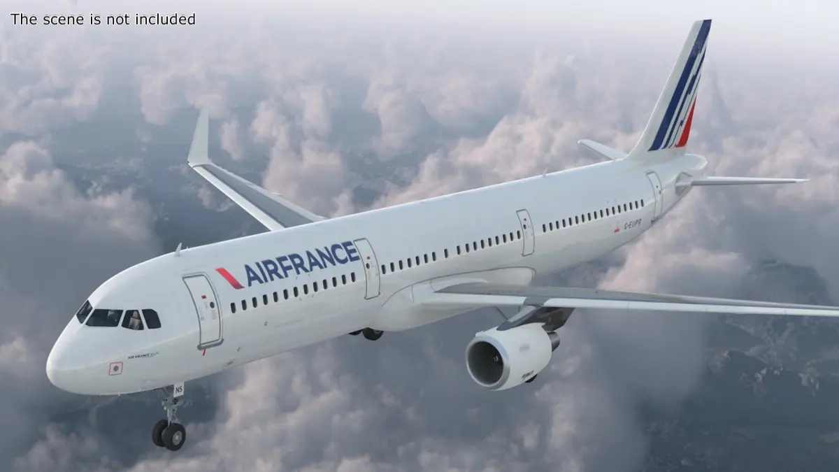 This model captures the sleek design of the Airbus A321, featuring detailed elements such as the fuselage, wings, and engines. With its spacious cabin and advanced avionics, the A321 is a favorite among airlines and passengers. The exterior details, including the distinctive Air France livery, are meticulously crafted to match the real-world appearance.