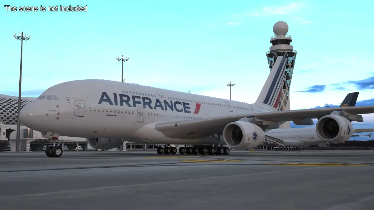 Air France Airbus A380 is a 3d model of specific model of the Airbus A380 aircraft operated by Air France, the French national airline.