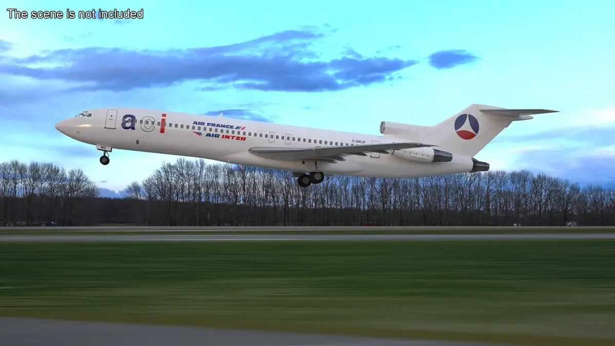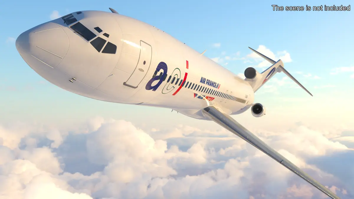 Air France Boeing 727 Airliner Rigged is a 3d model of commercial aircraft, showcasing the iconic livery of Air France.