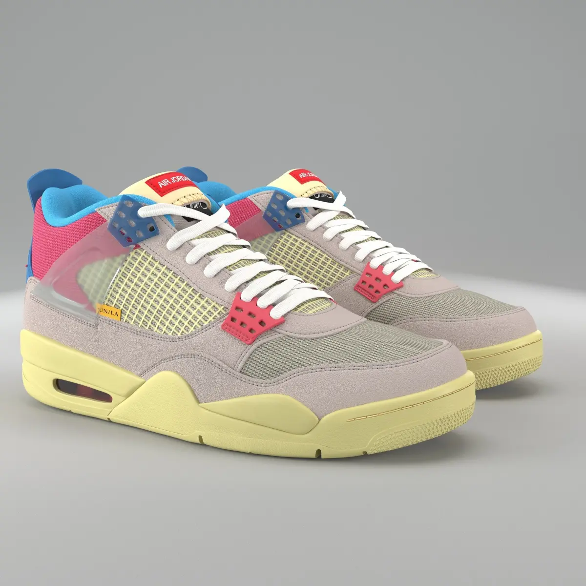 Air Jordan 4 Retro LA union What The was created with real world scale. . all textures and materials created with high quality to provide you beautiful render for every 3d format . i have provide you different format with several render engine all materials has created with proper way all textures has 8K resolution