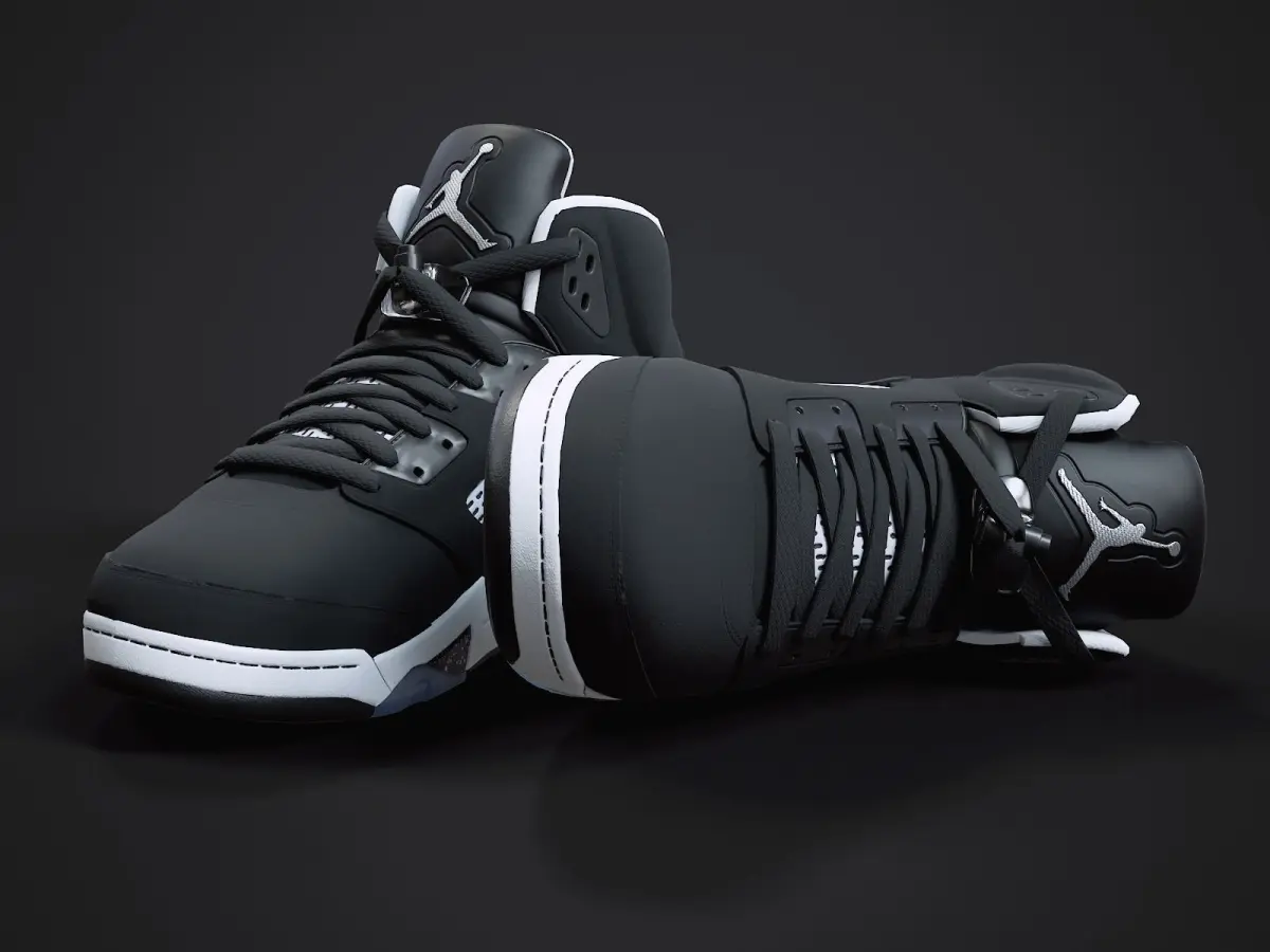 Medium poly PBR textured model of Air Jordan 5-retro sneaker (OreoMoonlight colorway). Well textured and ready for Virtual Reality (VR), Augmented Reality (AR), games and other real-time apps for handheld devices.