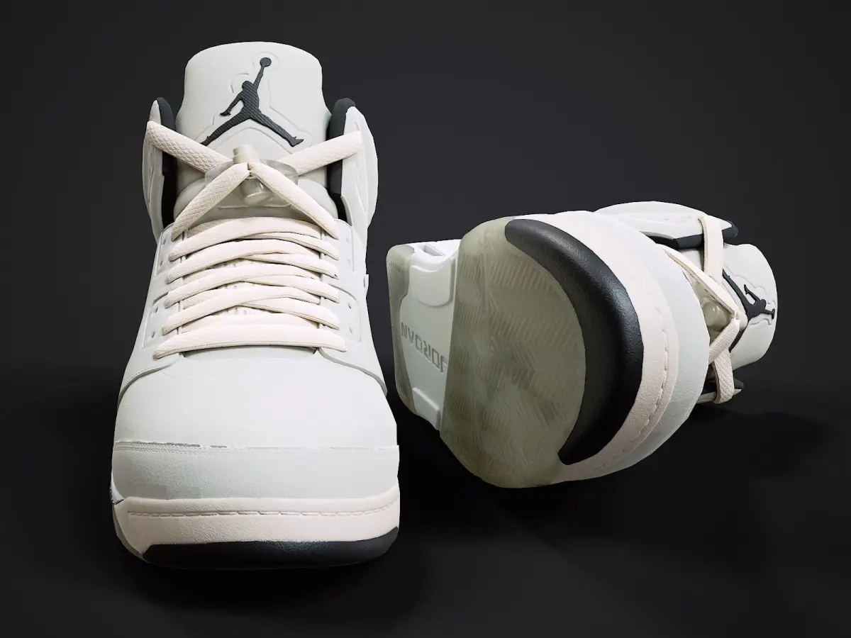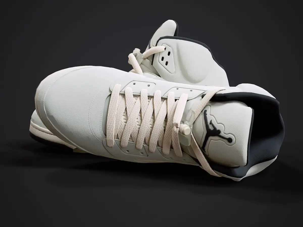 Medium poly PBR textured model of Air Jordan 5-retro sneaker (SE-Sail colorway). Well textured and ready for Virtual Reality (VR), Augmented Reality (AR), games and other real-time apps for handheld devices.