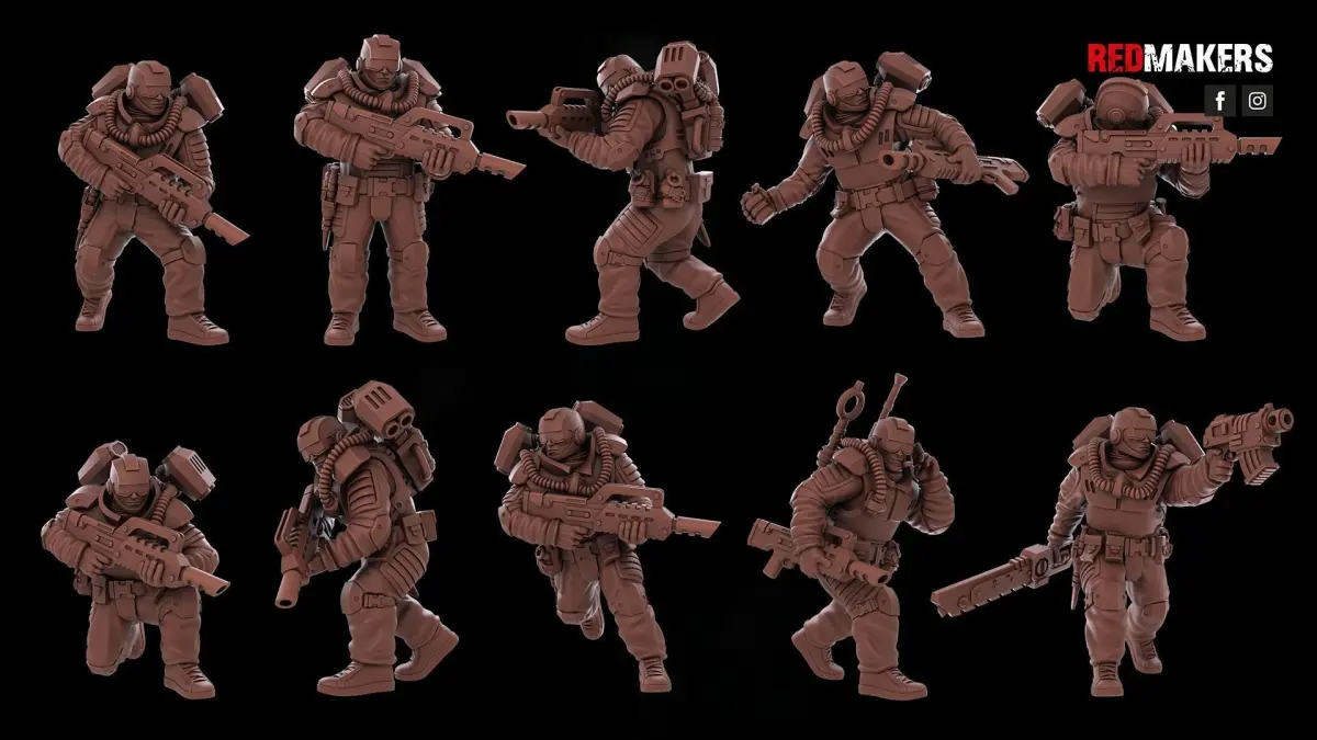 The infantry squad of the Airborne Division consists of 8 soldiers, a radio operator and a sergeant. Each warrior has several weapon options.