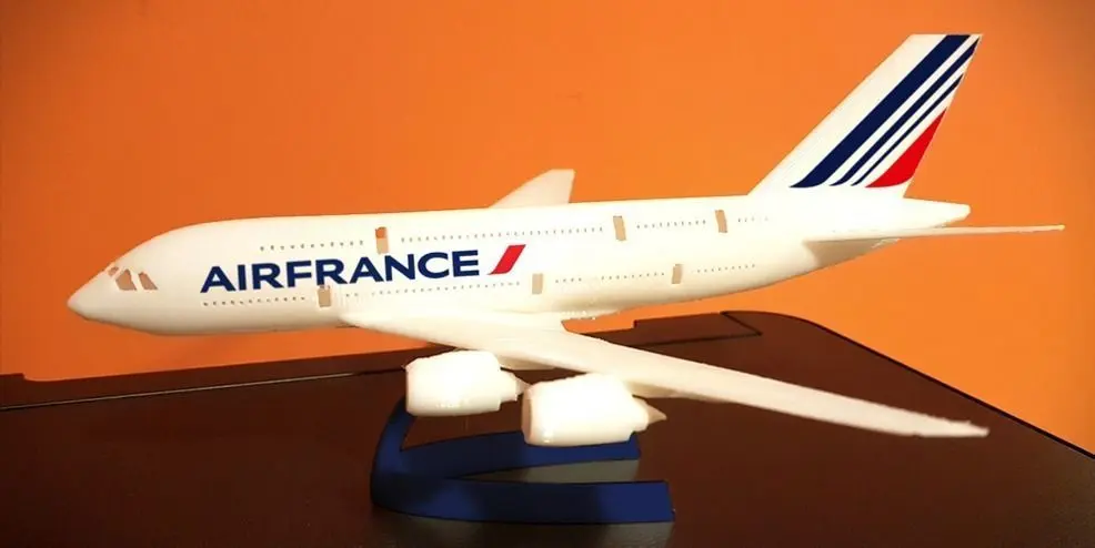 Mqueta representation of the largest passenger plane in the world Airbus 380 with a very good level of detailthe model contains 6 files:1 fuselage2 right wing: (duplicate and mirror to get left wing)3 left rear fin: (duplicate and split to get the right fin)4 turbine5 flaps fairings6 support