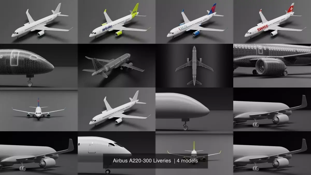 This is a collection pack, that is containing models of Airbus A220-300 with liveries such as: