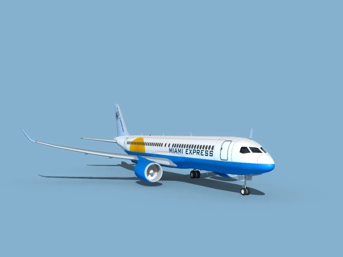 This model is built near to scale. It is within a 3-5 percent ratio of actual general arrangement dimensions. This model has retractable landing gear, animateable ailerons, flaps, rudder, elevators, stabilizer, and turbines. The model has basic rigging and is ready for animation work. It was developed for video animation for populating airport scenes and in flight video. All textures and materials are included here in a MATEX file with the model. It is available in many different formats. This model was not designed for 3d printing, it is a digital file only. The Airbus A220 formerly the Bombardier CS300 is a family of narrow body, twin engine medium range midsize passenger airliners. Bombardier developed the design through the test flight stage when Airbus bought the majority share of the CS program at Bombardier Company. The 108 to 133 seat aircraft was named the CS100 and now has been renamed the Airbus A220-100. The CS300 with its 130-160 seat capacity has been renamed Airbus A220-300.