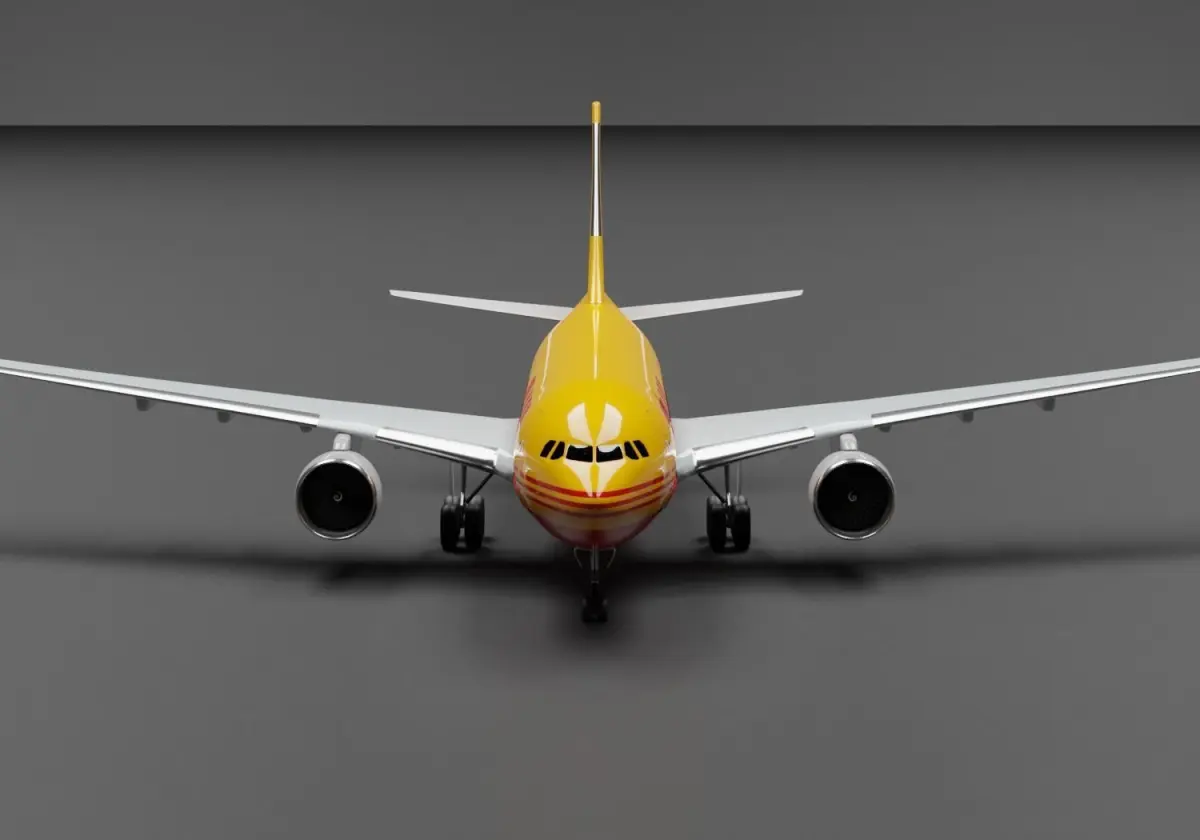 This is a 3d model of an Airbus A300 with a DHL Cargo livery