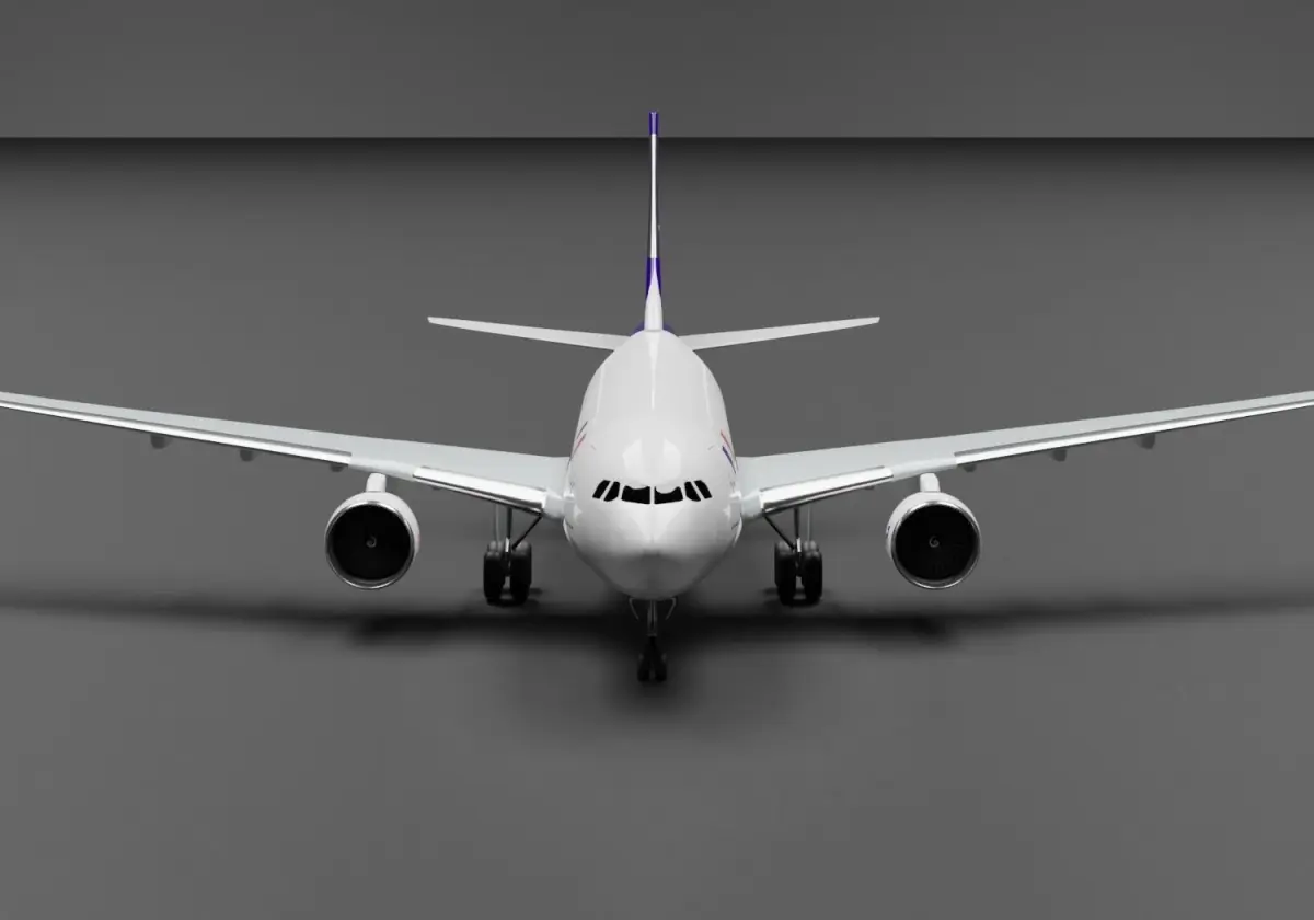 This is a 3d model of an Airbus A300 with a FedEx Cargo livery