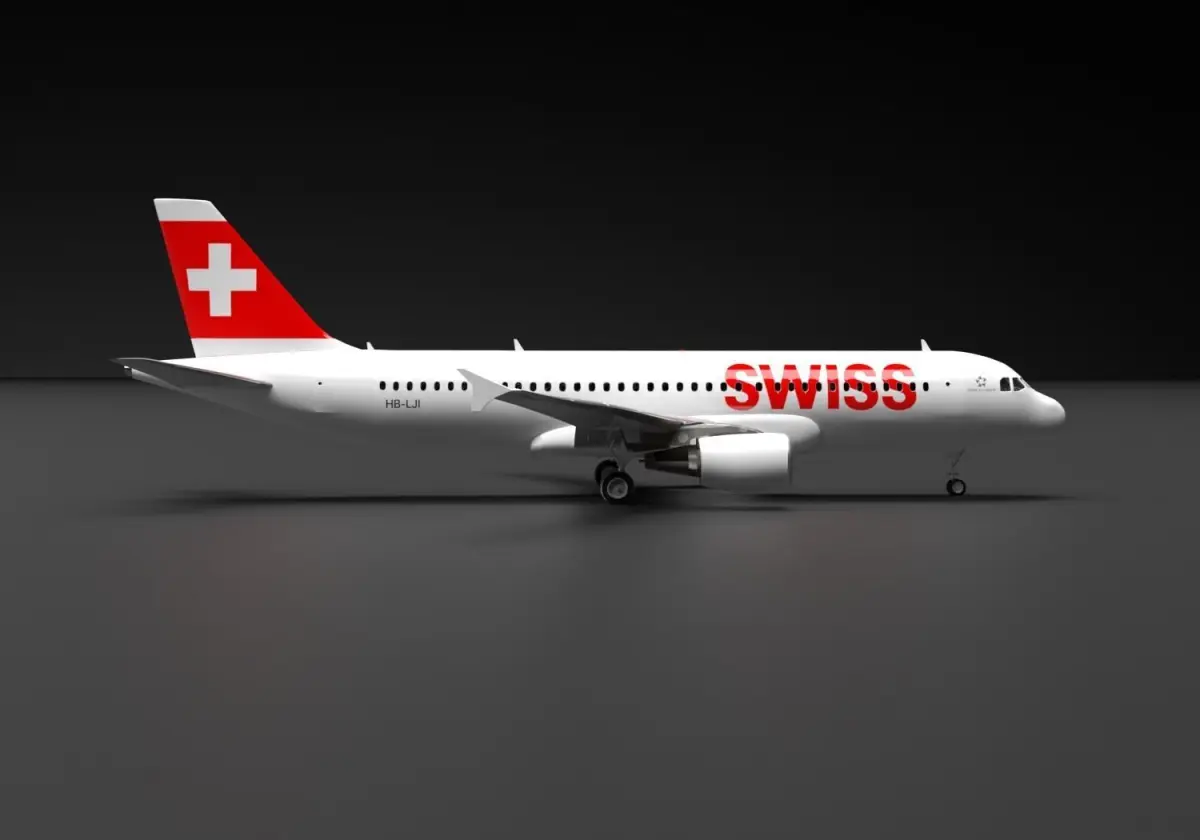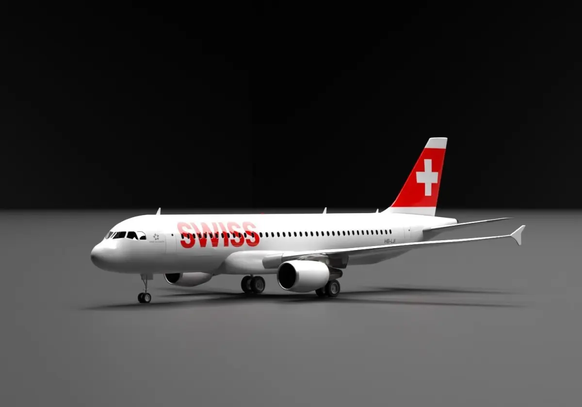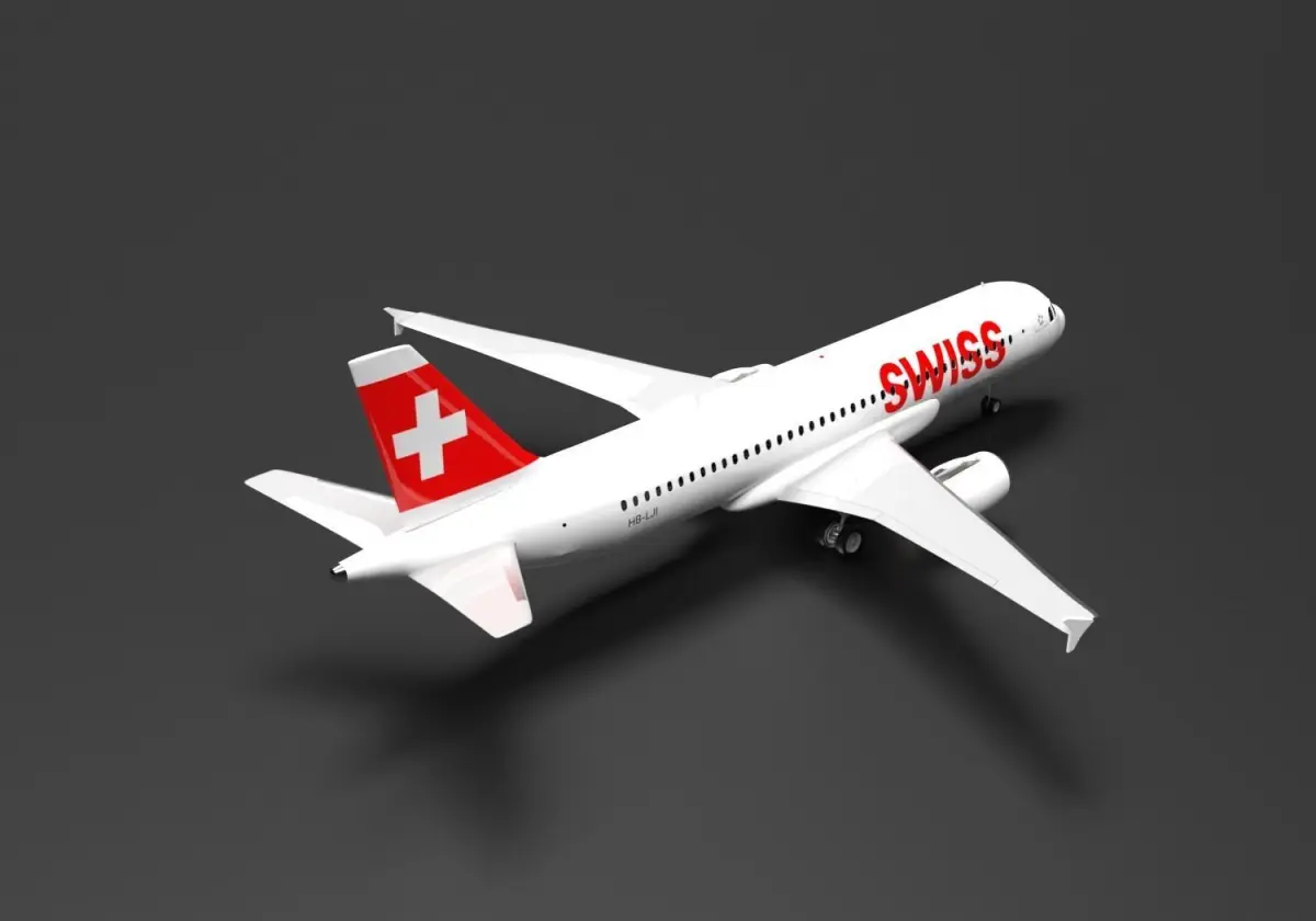 This is a 3d model of an Airbus A320 with a SwissAir livery