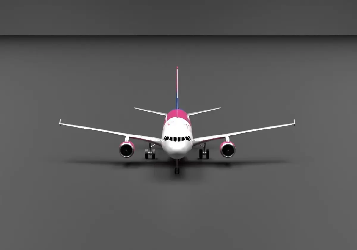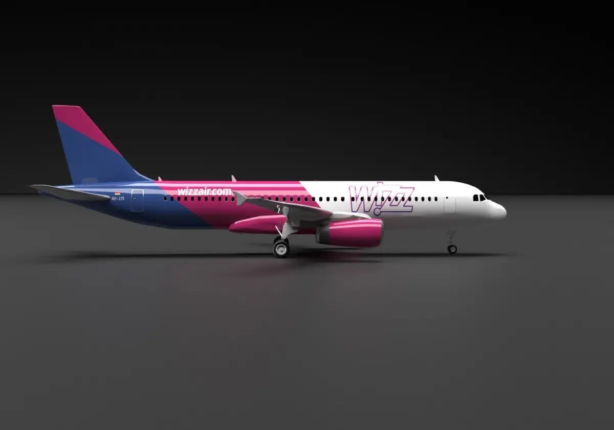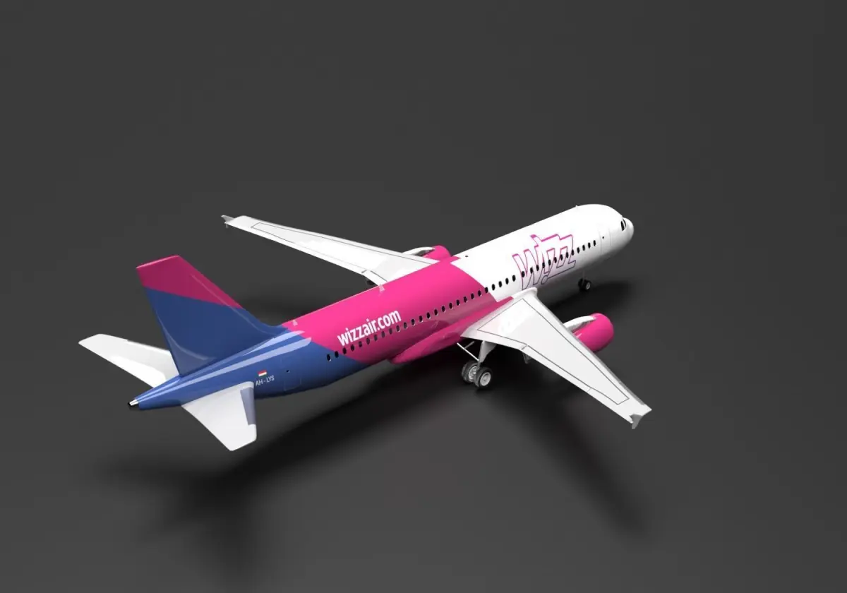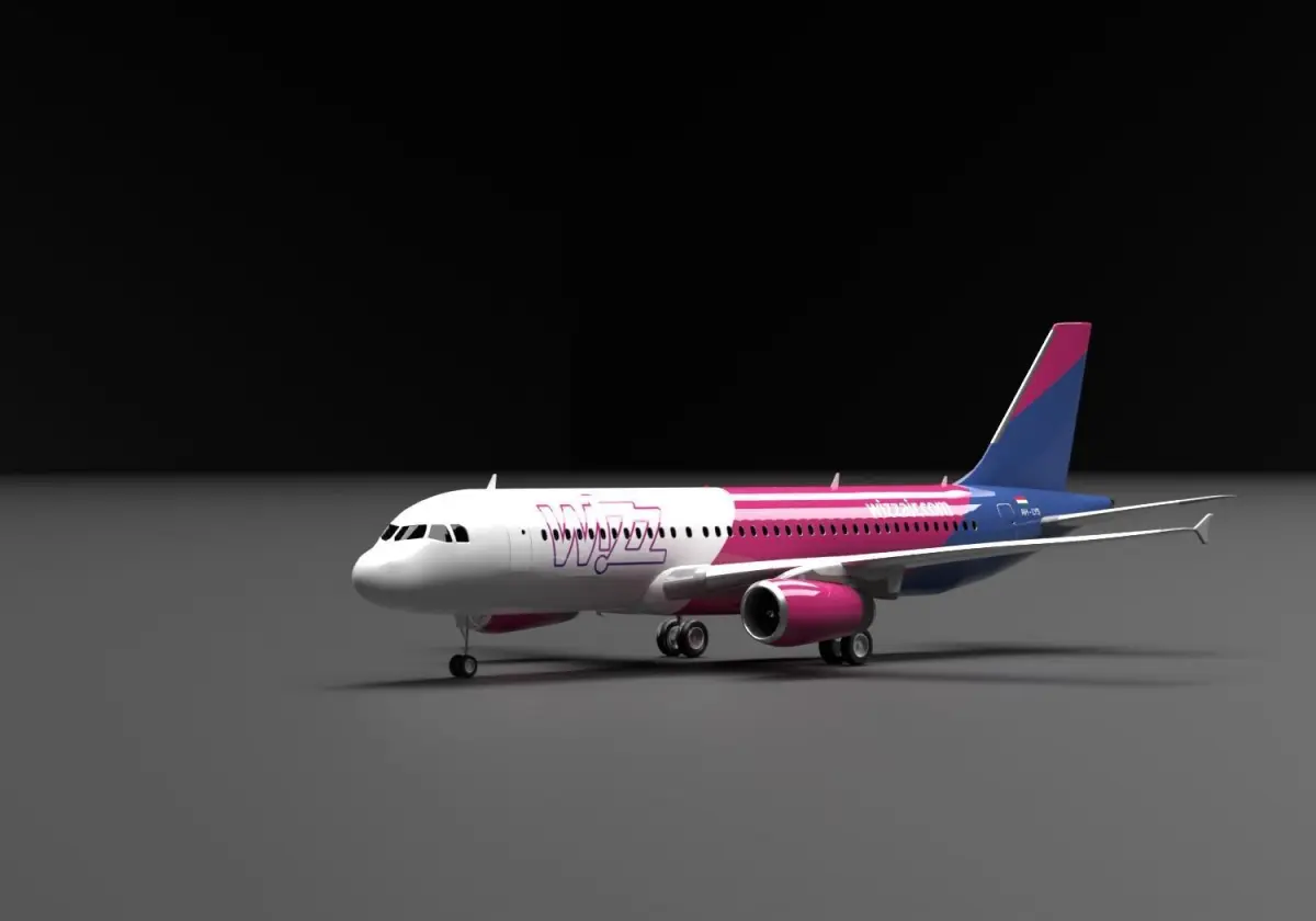 This is a 3d model of an Airbus A320 with a WizzAir livery