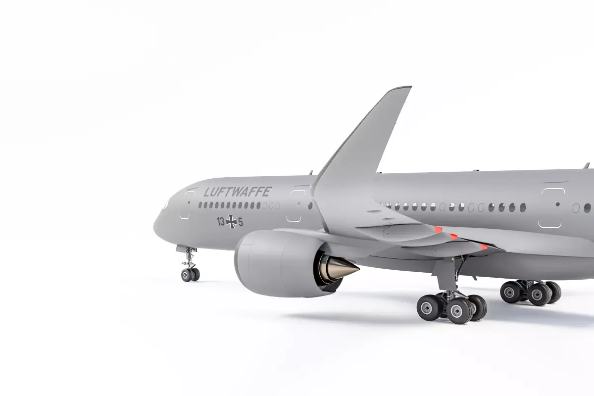 Fictional millitary version of the Airbus A350-900. This model was created in Blender, rendered in Cycles.