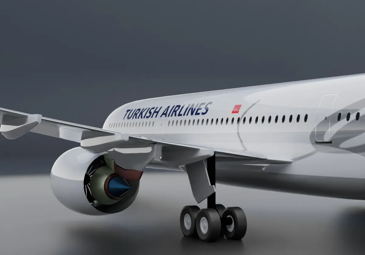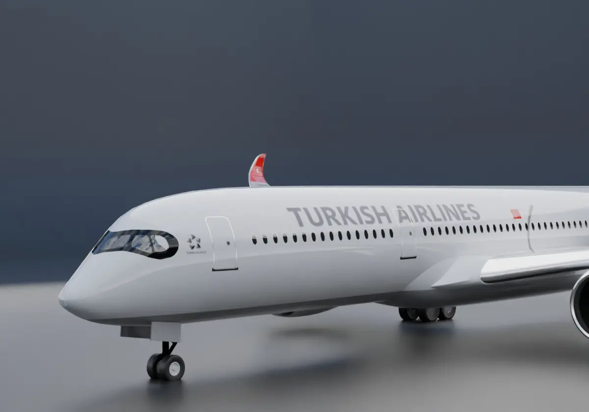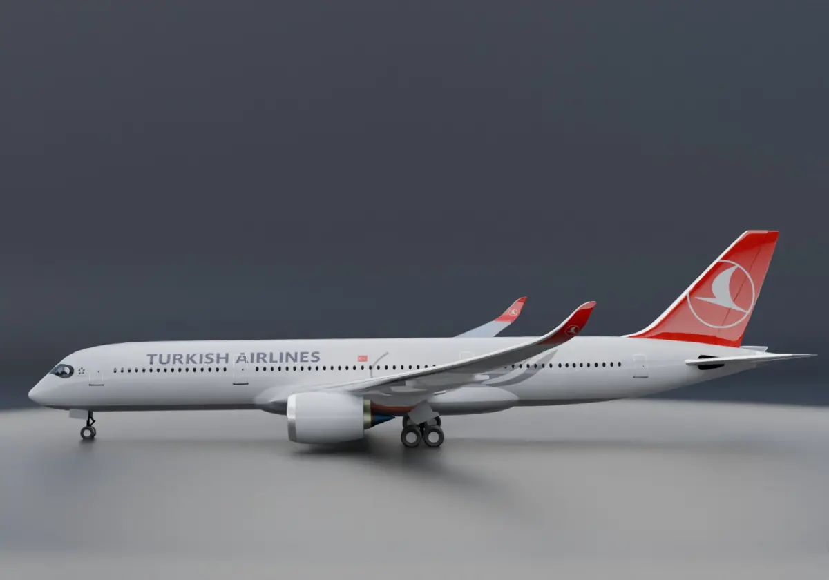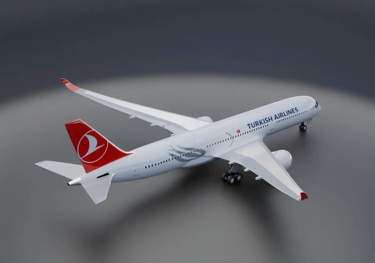 This is a 3d model of an Airbus A350-900 with Turkish Airways Livery