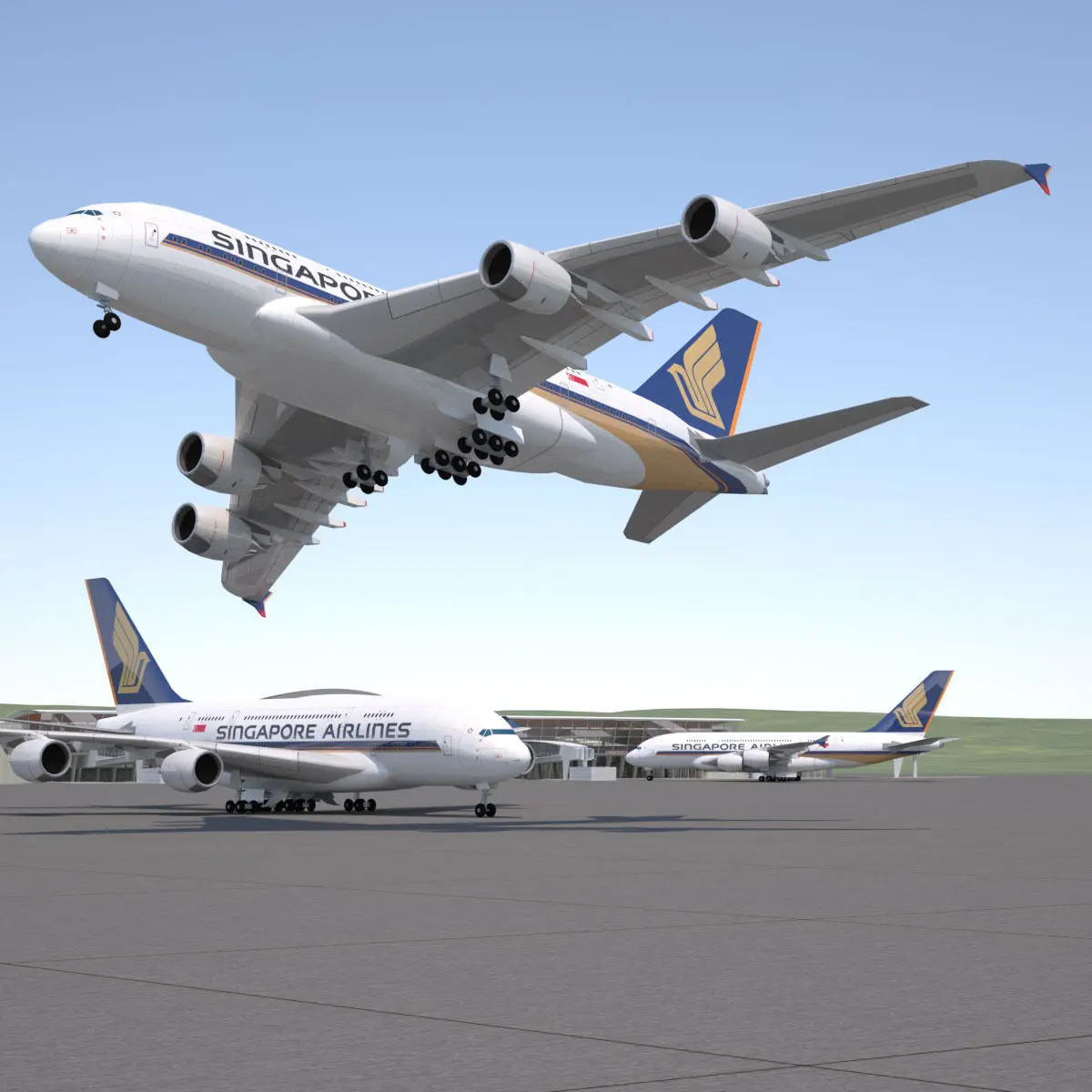 Improve your architectural visualizations adding a sense of scale and activity adding this low polygon count, but very effective, airplanes.Companies included in this package:Air FranceBritish AirwaysChina SouthernEmiratesEtihad AirwaysKingfisher AirlinesKorean AirLufthansaMalaysia AirlinesQantasQatar AirwaysSingapore AirlinesThai AirwaysVirgin Atlantic
