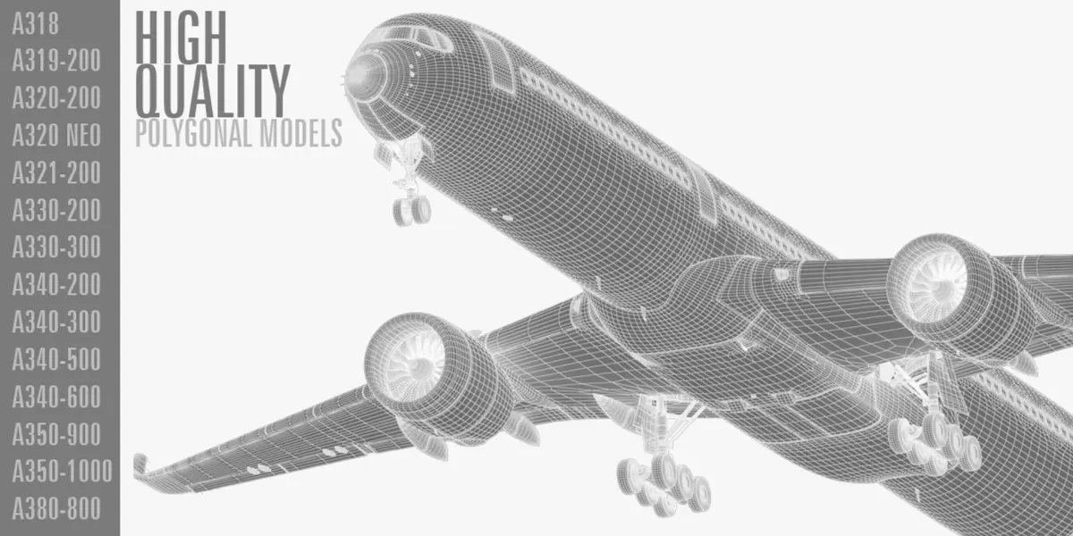 High detailed and accurated Airbus planes 3d model collection.