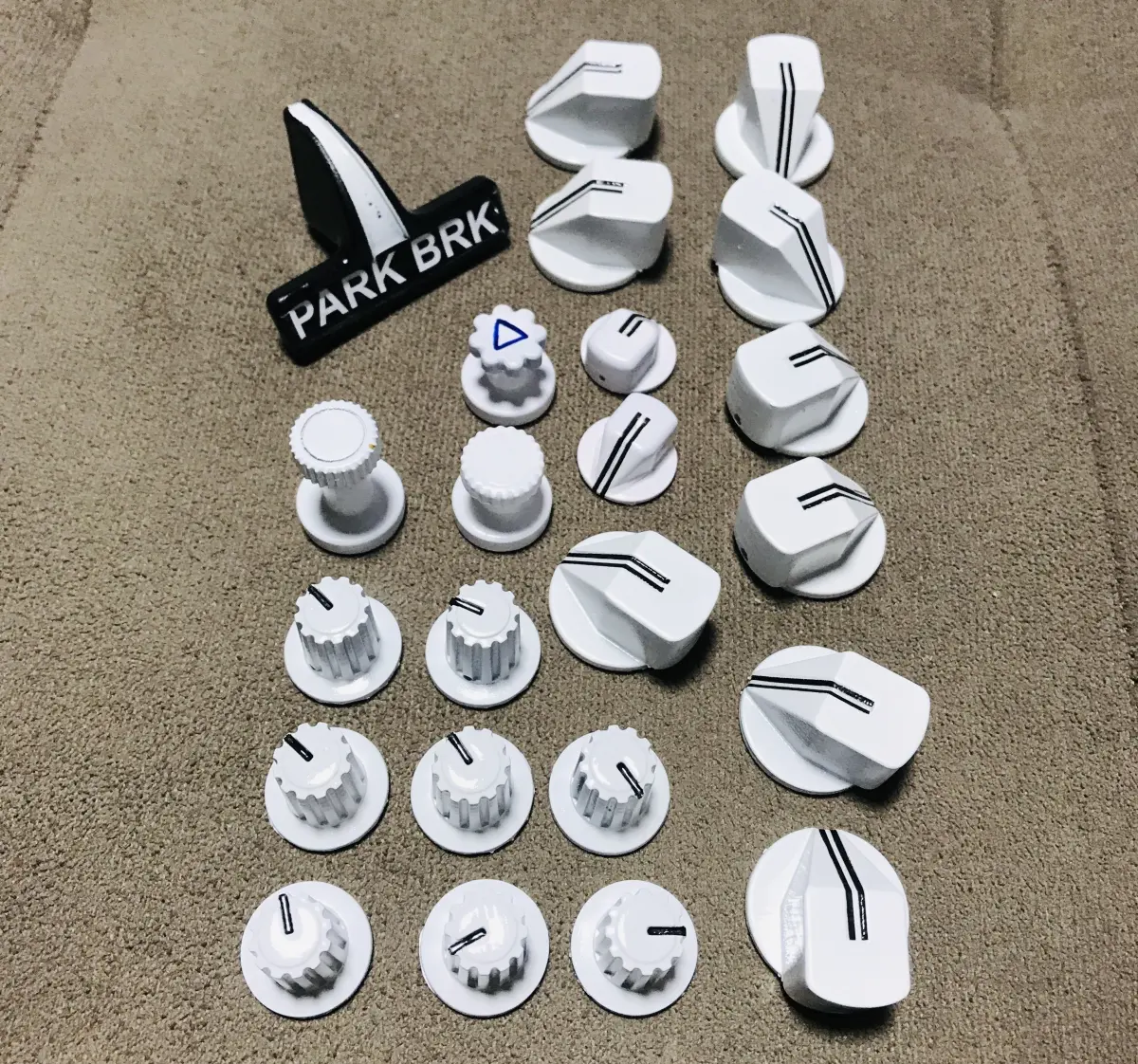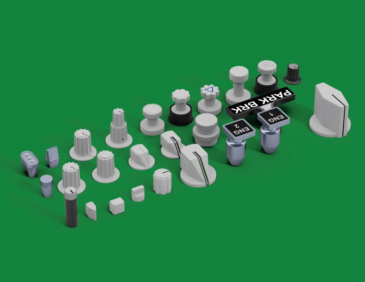 25 buttons of the Airbus A320 family aircraft panel, all in the original scale, for use in the manufacture of flight simulators cockpits, professional or amateur, all ready for 3D printing!