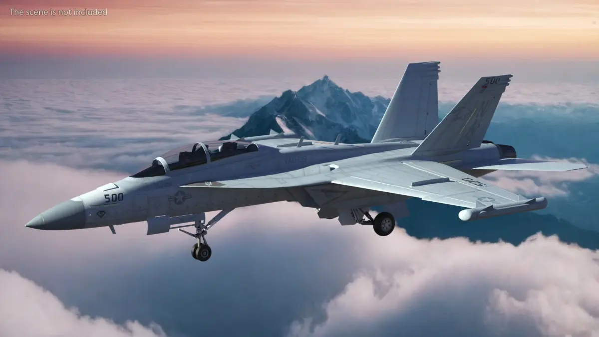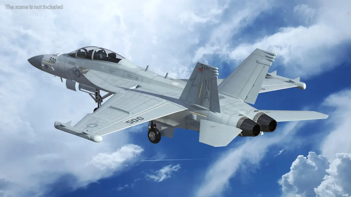 Aircraft Boeing EA-18G without Armament Rigged for Cinema 4D is a 3d model of aircraft configured specifically for electronic warfare missions, lacking conventional weapons such as bombs or missiles.