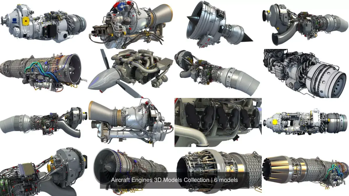 This is a collection of 7 high quality 3d models of aircraft engines.