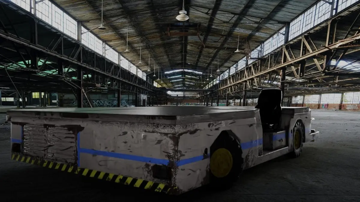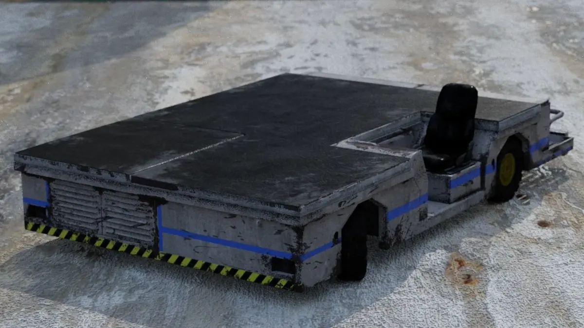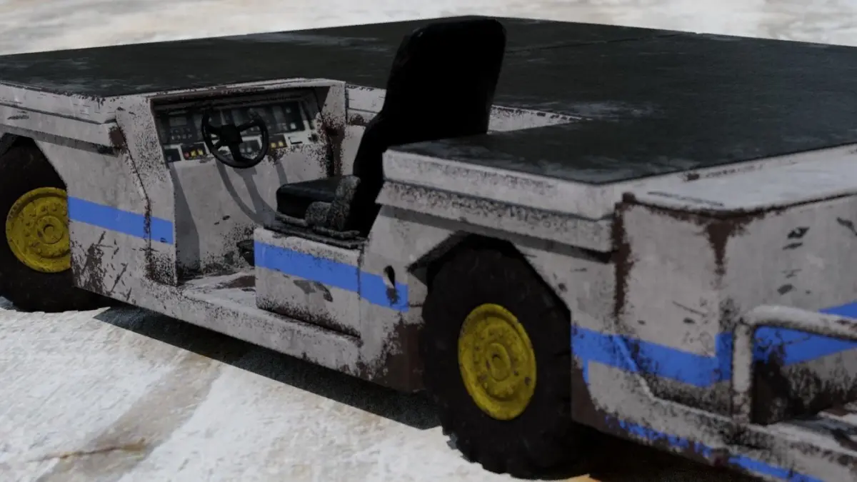 A sparsely rusted and worn off vehicle with identical wheels