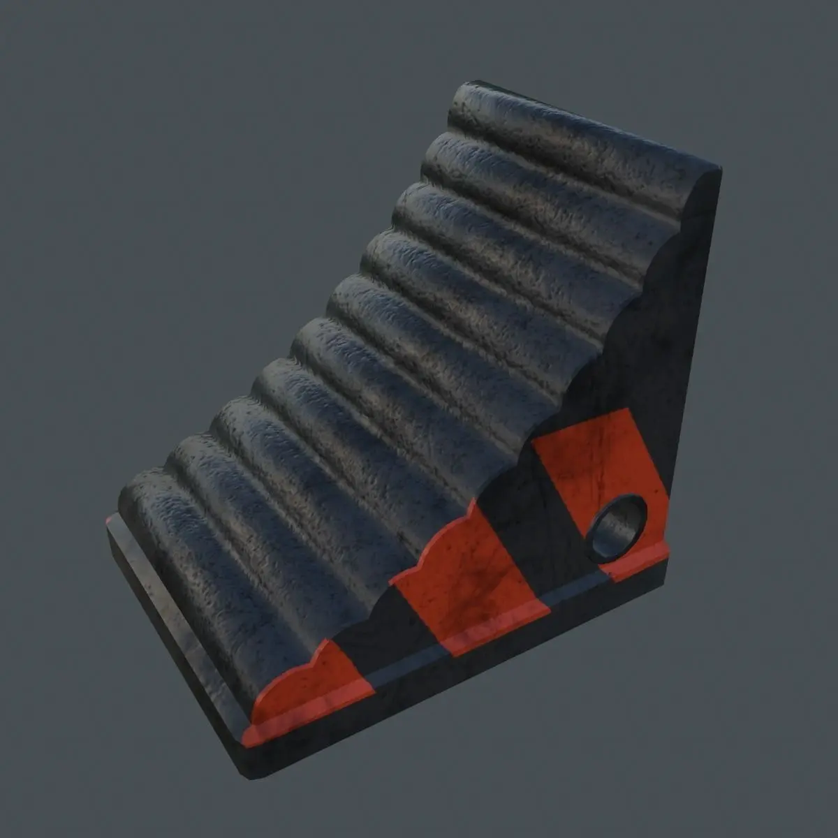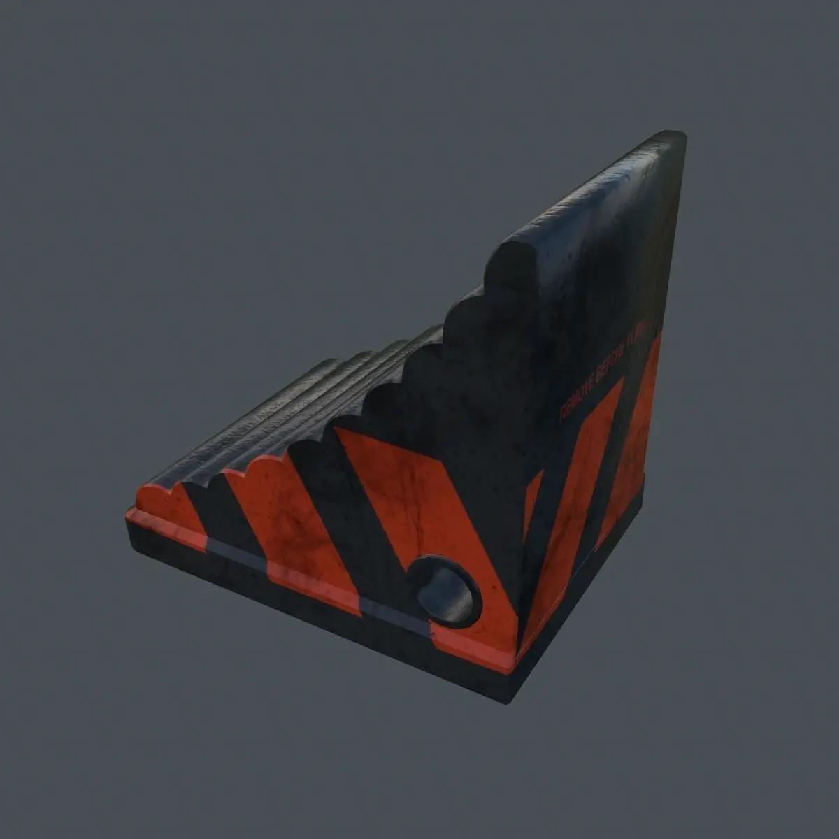 Wheel stopper for parked aircrafts. This type of tool is used to prevent accidental movement of aircrafts.