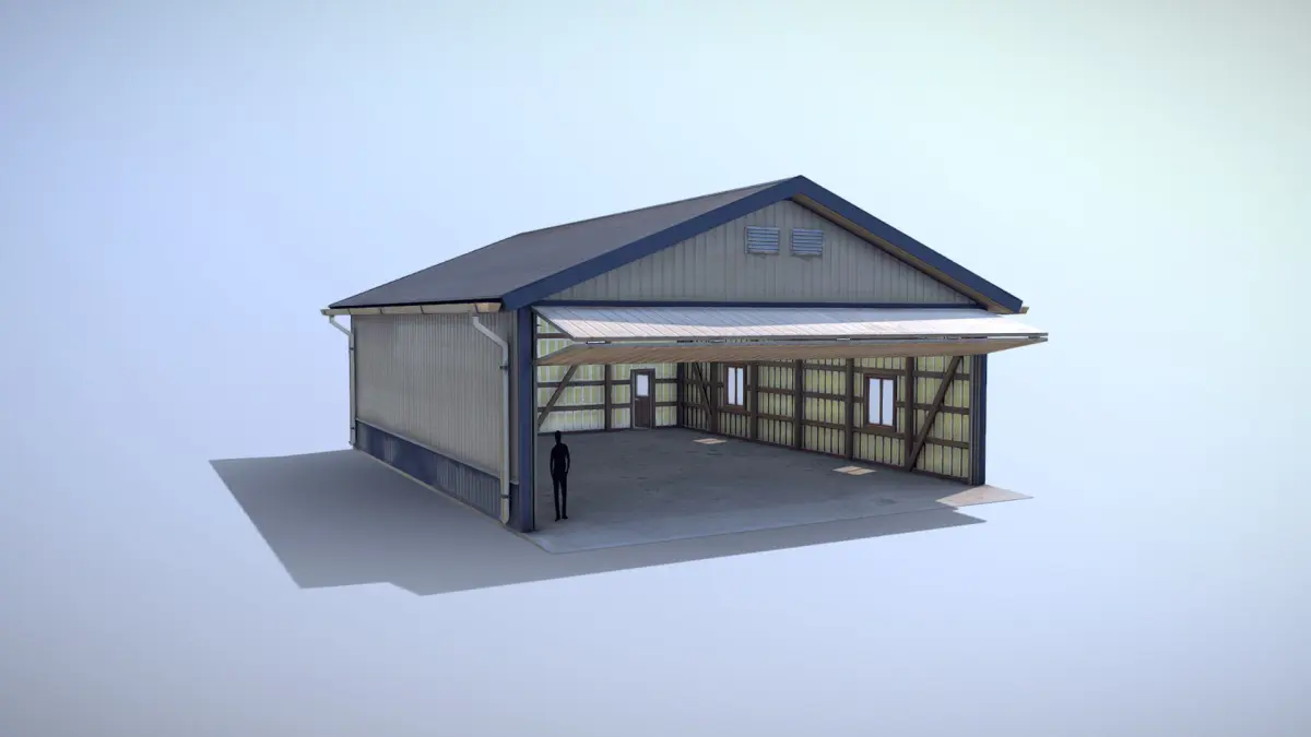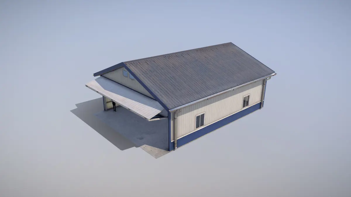 Low-poly 3D model Airfield Hangar with LODs and animation