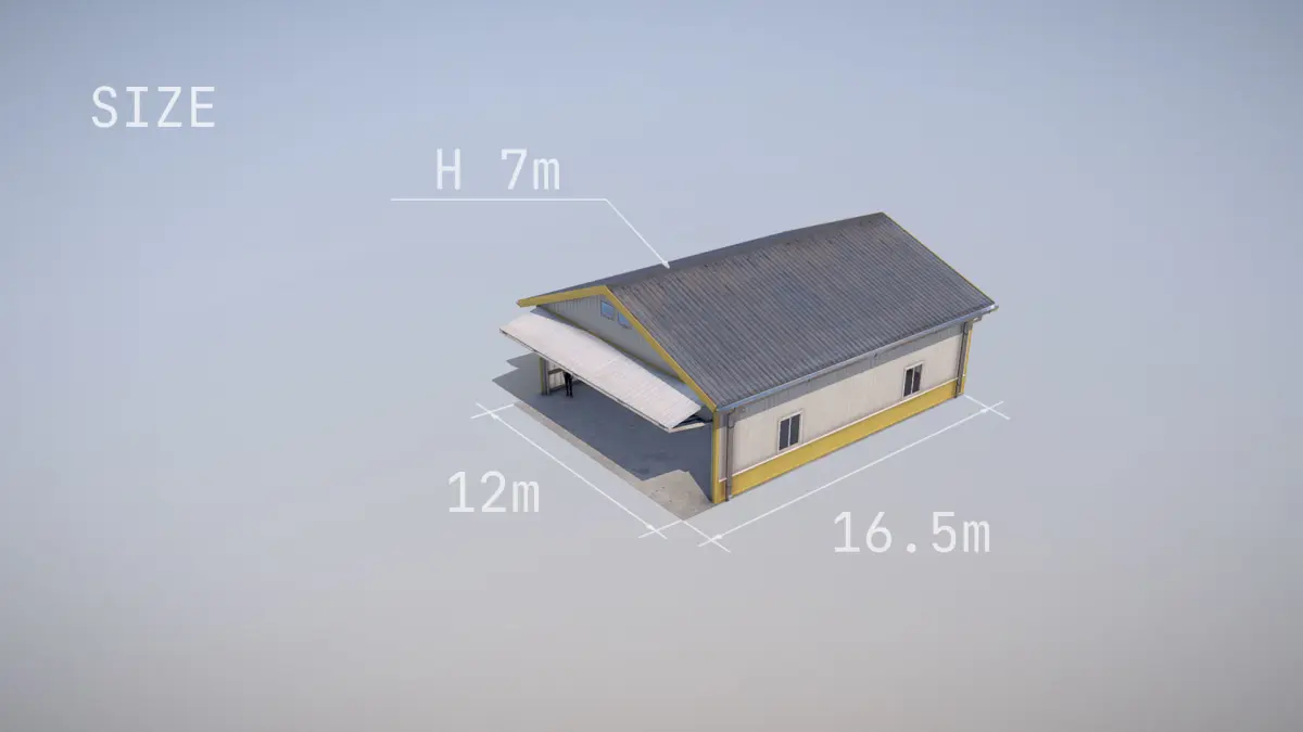 Low-poly 3D model Airfield Hangar with LODs and animation
